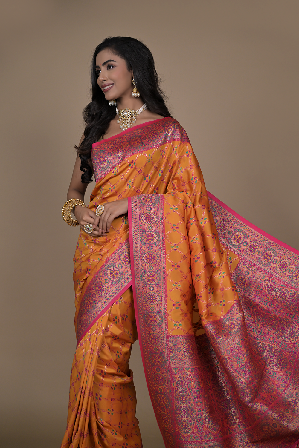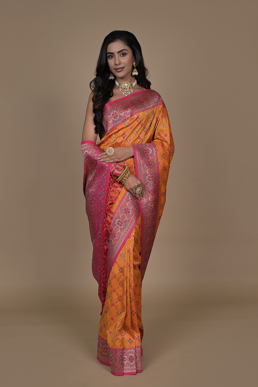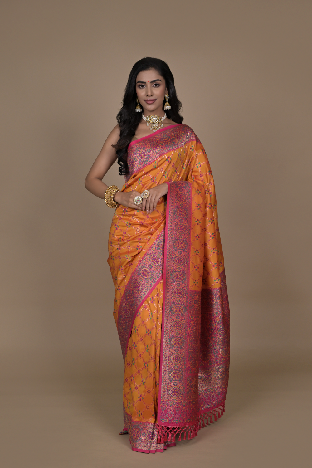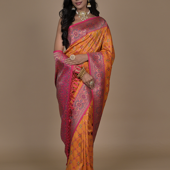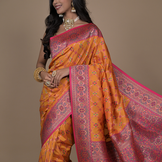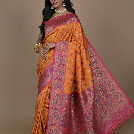 Adorned with Banarasi Woven Zari, this Banarasi Silk saree blends tradition and modernity, ideal for Party Wear. Its Lightweight feel ensures graceful draping. Maintain with Dry Wash/ Dry Clean.