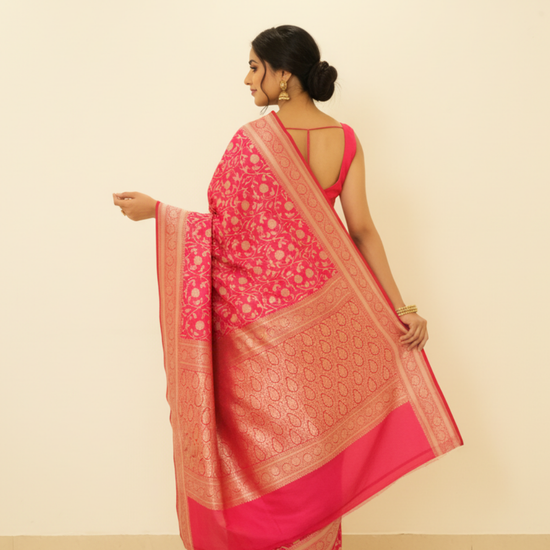 Panna Timeless Elegance Rani Banarasi Silk Saree With Unstitched Blouse