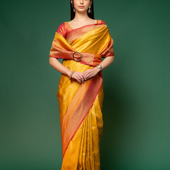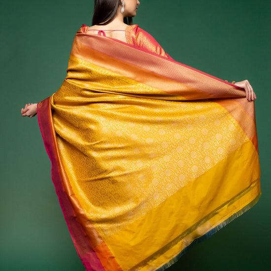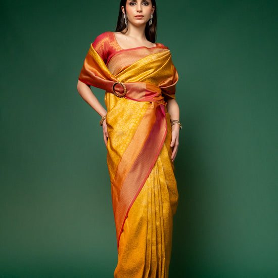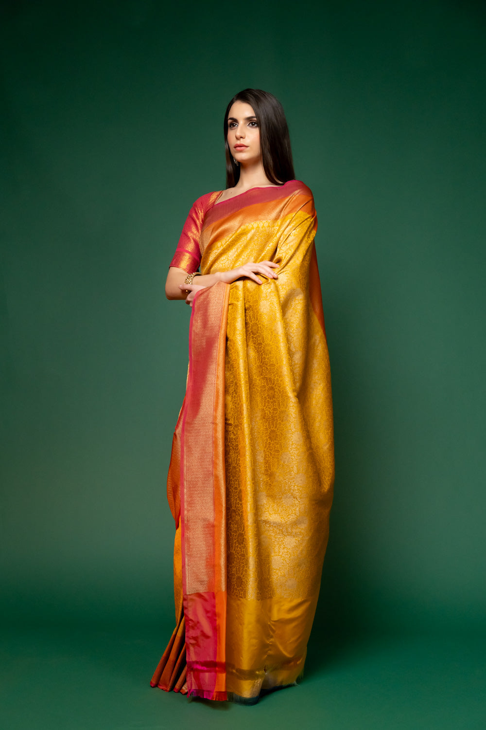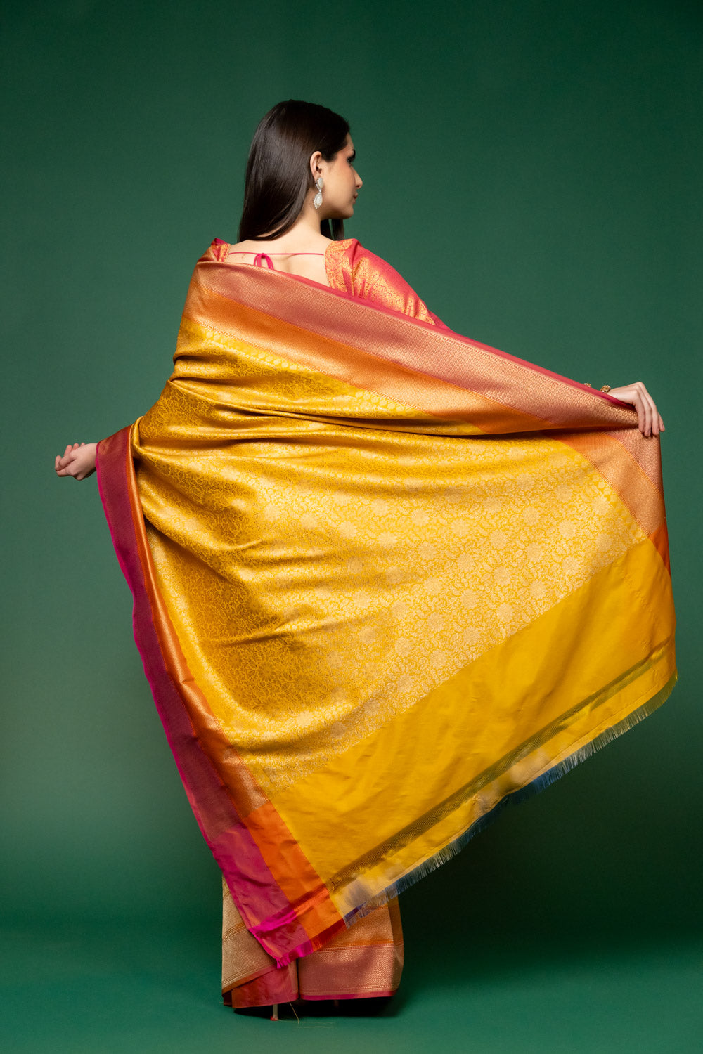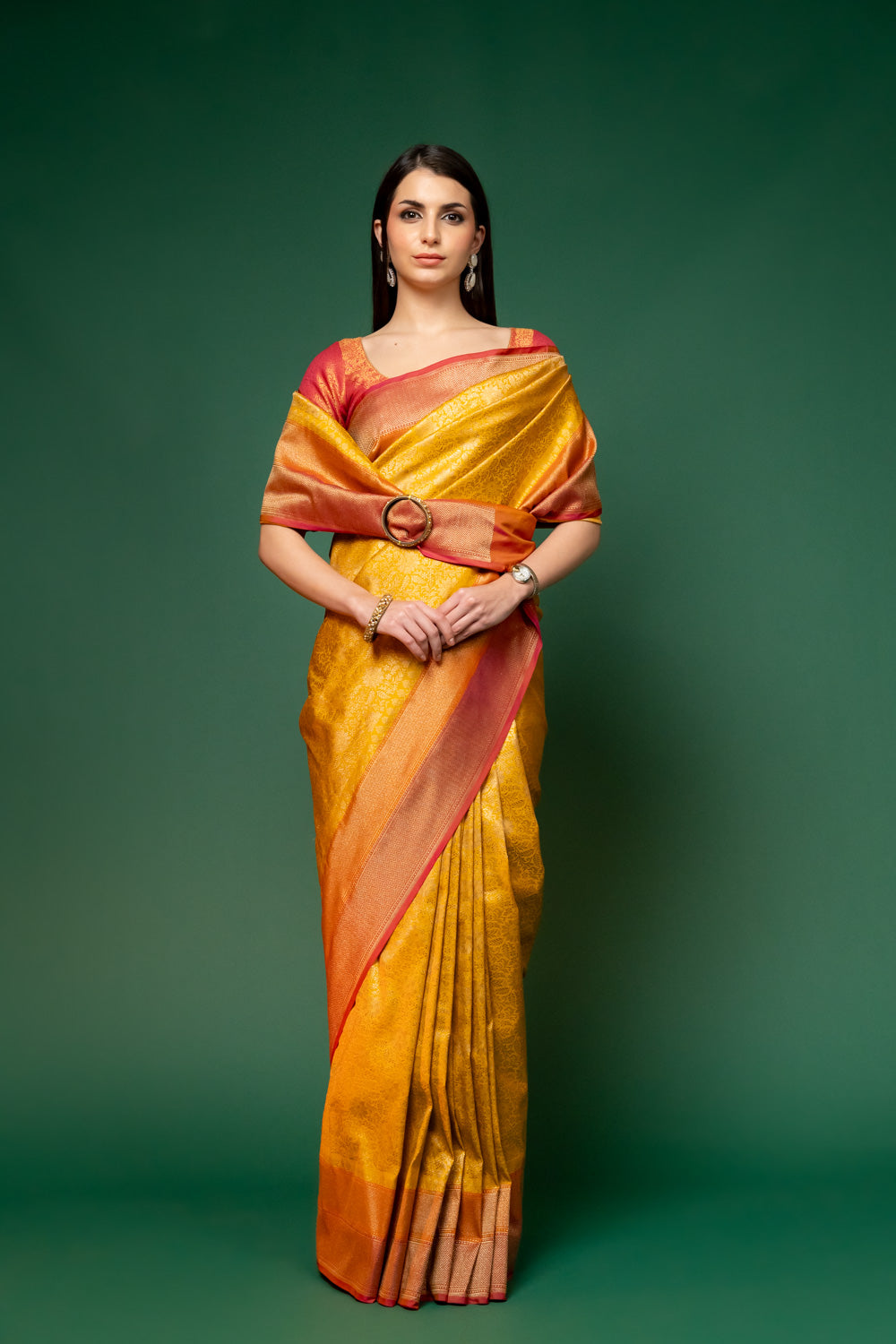 Mustard Woven Zari Banarasi Silk Saree With Unstitched Blouse – The Panna Shop