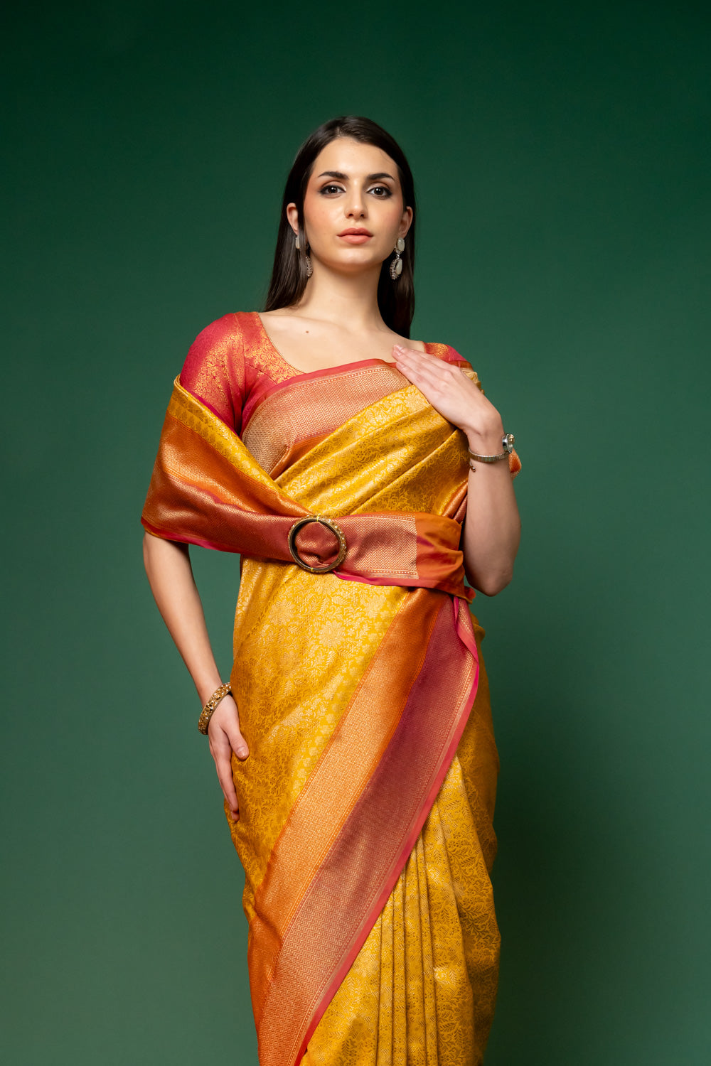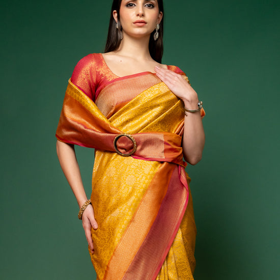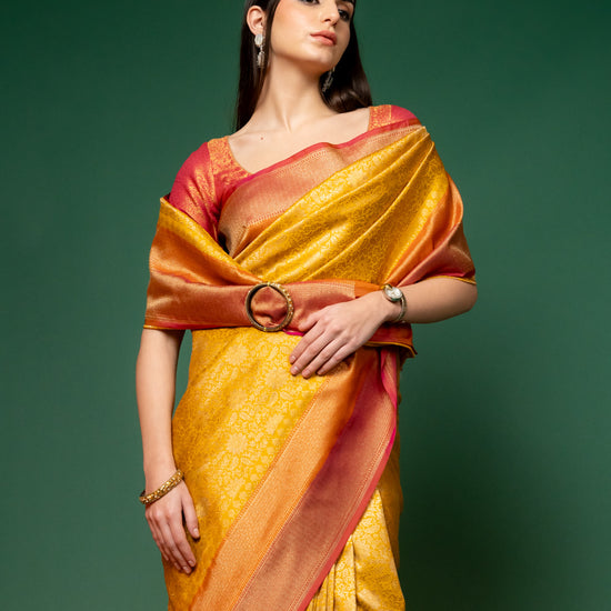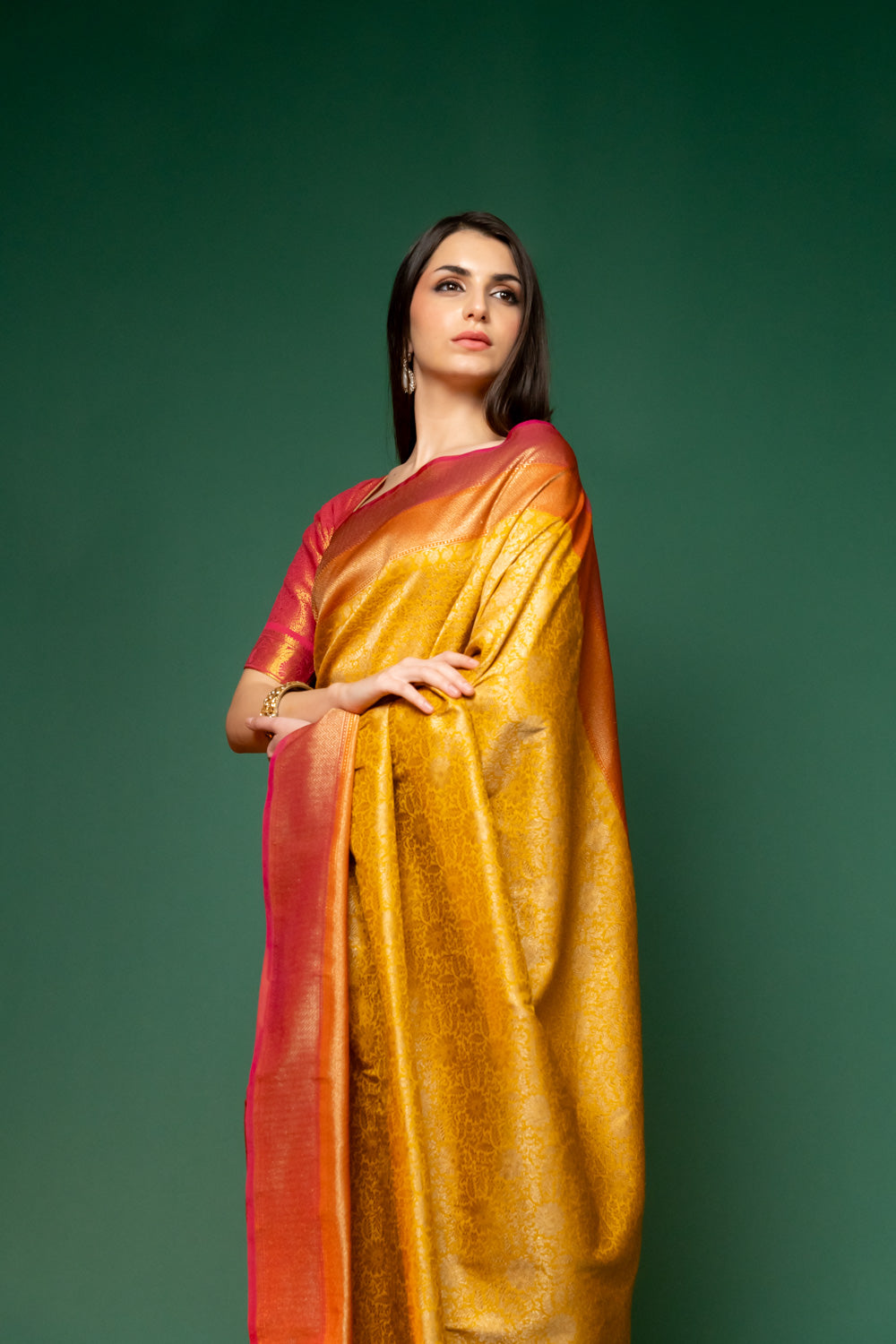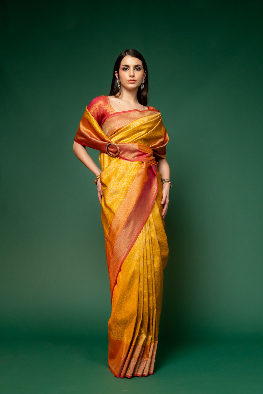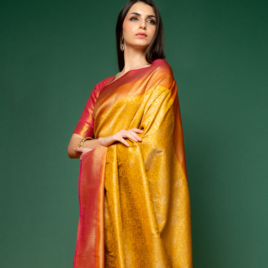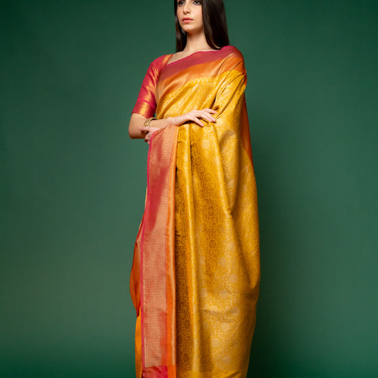 Mustard Woven Zari Banarasi Silk Saree With Unstitched Blouse – The Panna Shop
