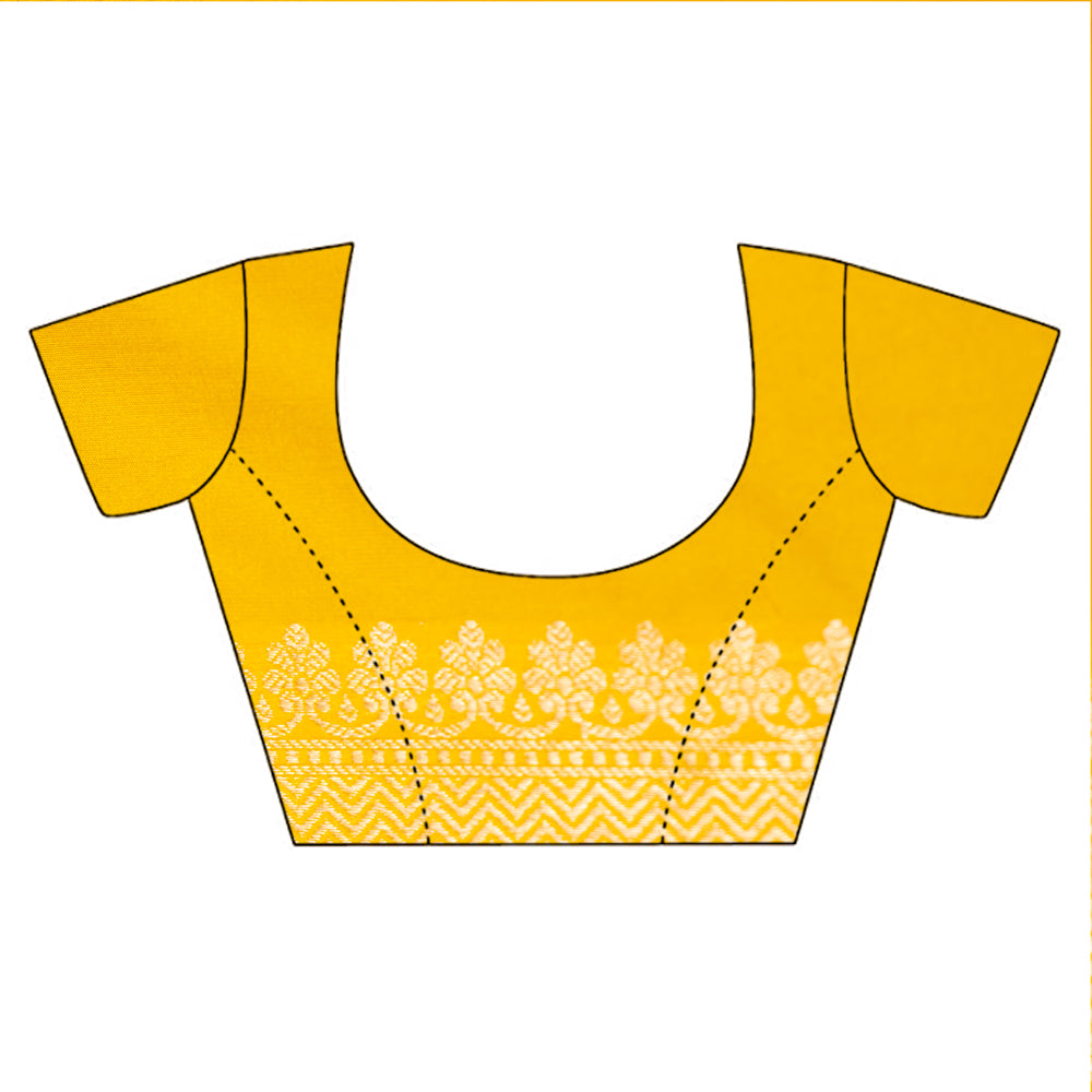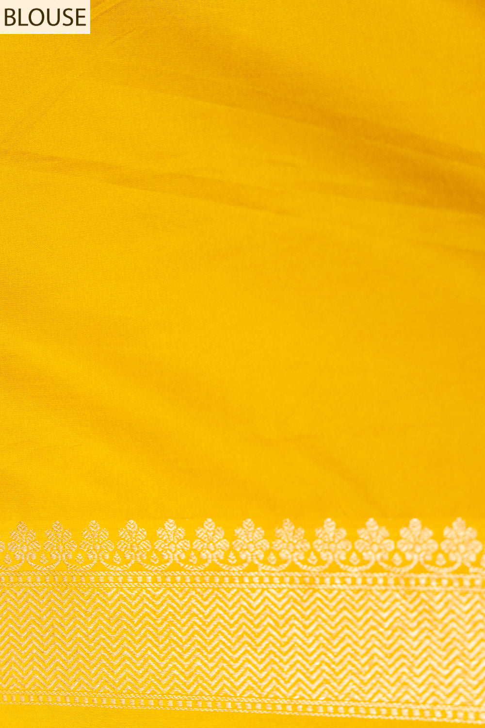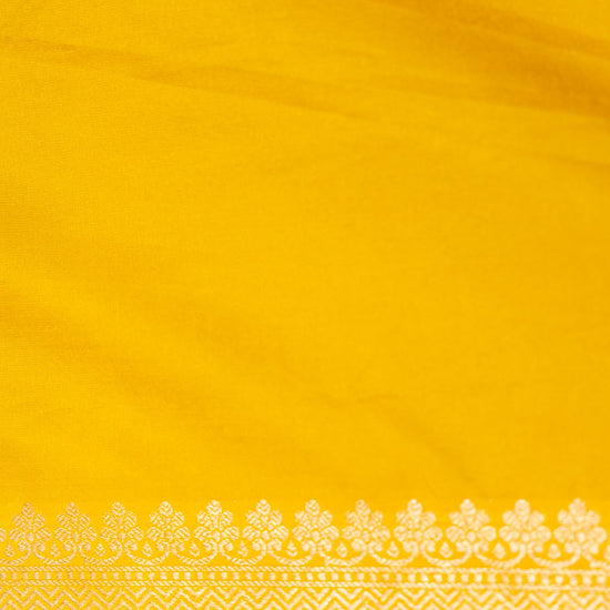 Mustard Woven Zari Banarasi Silk Saree With Unstitched Blouse