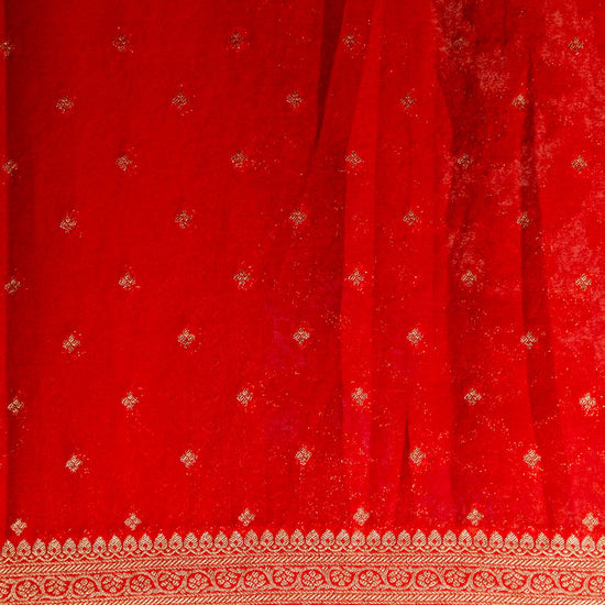 Adorned with Banarasi Woven Zari, this Chinon saree blends tradition and modernity, ideal for Party Wear. Its Lightweight feel ensures graceful draping. Maintain with Dry Wash / Dry Clean.