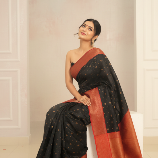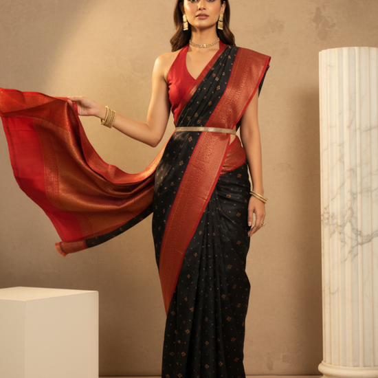 Panna Bold Statement Black Cotton Silk Saree With Unstitched Blouse