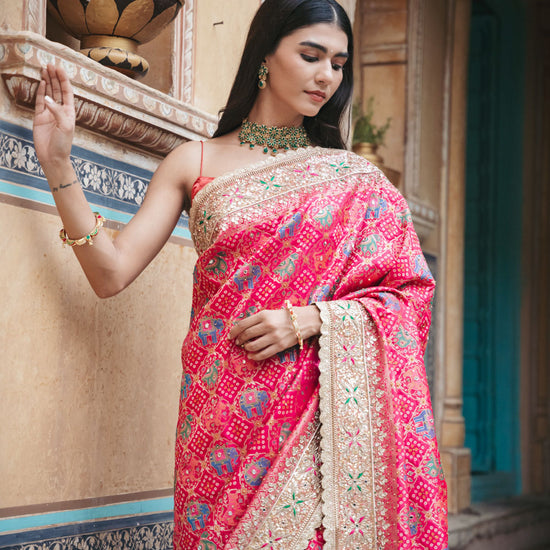 Panna Rani Banarasi Silk Embroidered Saree With Unstitched Blouse