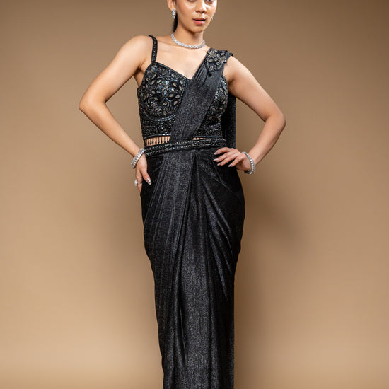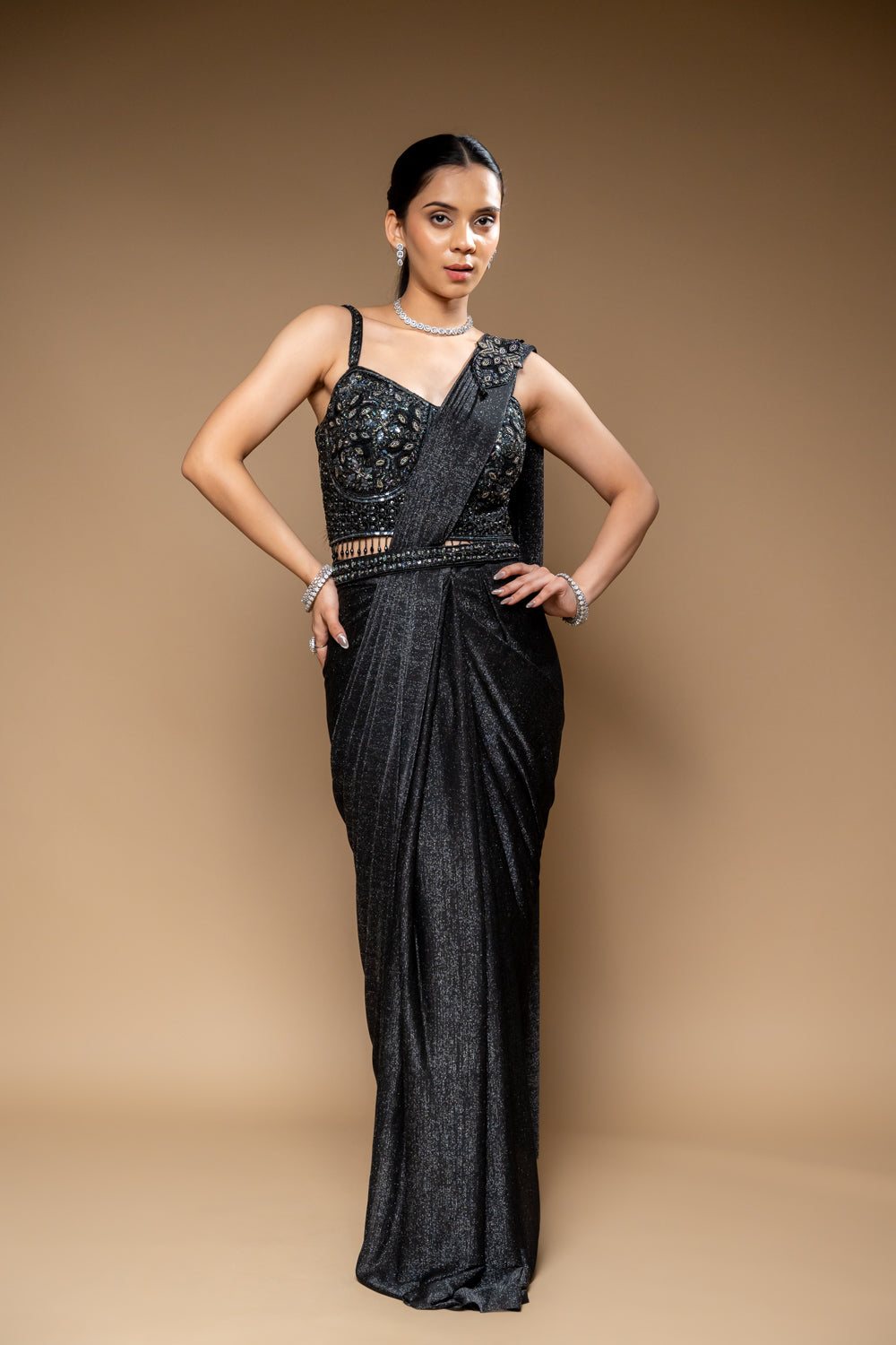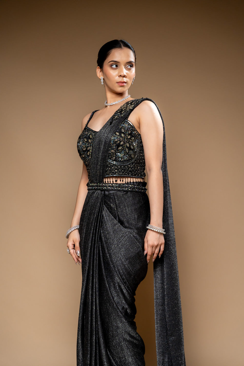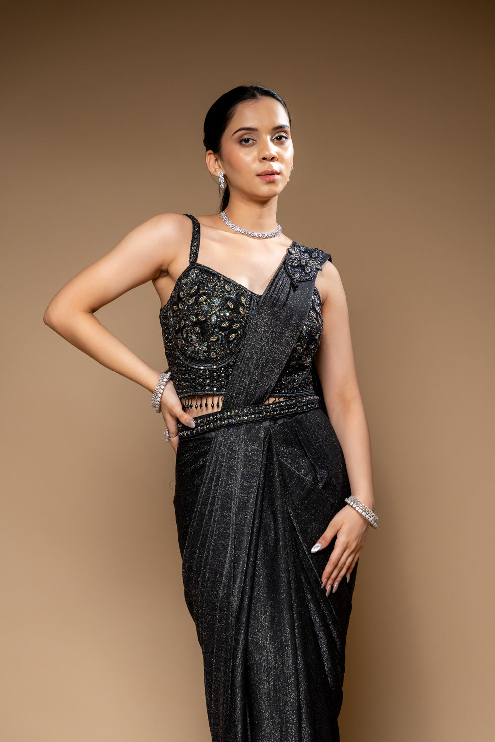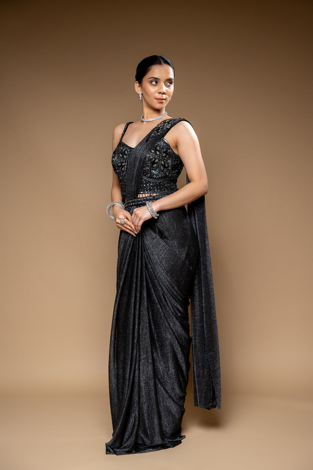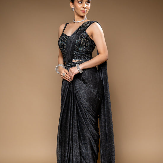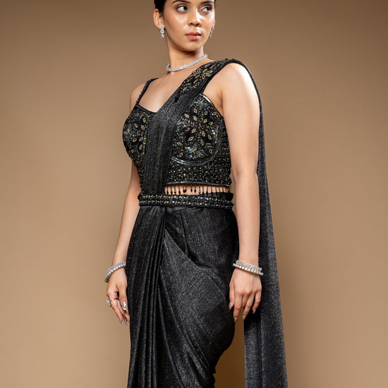 Panna Black Cutdana, Bead & Sequence Shimmer Pre-Draped Designer Saree With Readymade Blouse