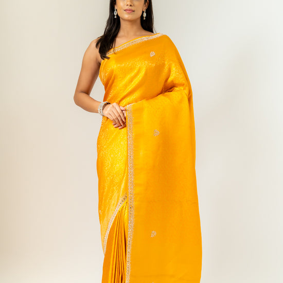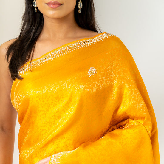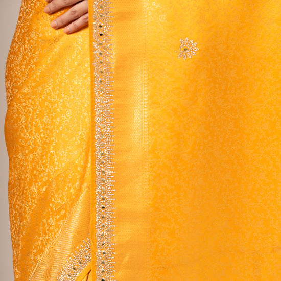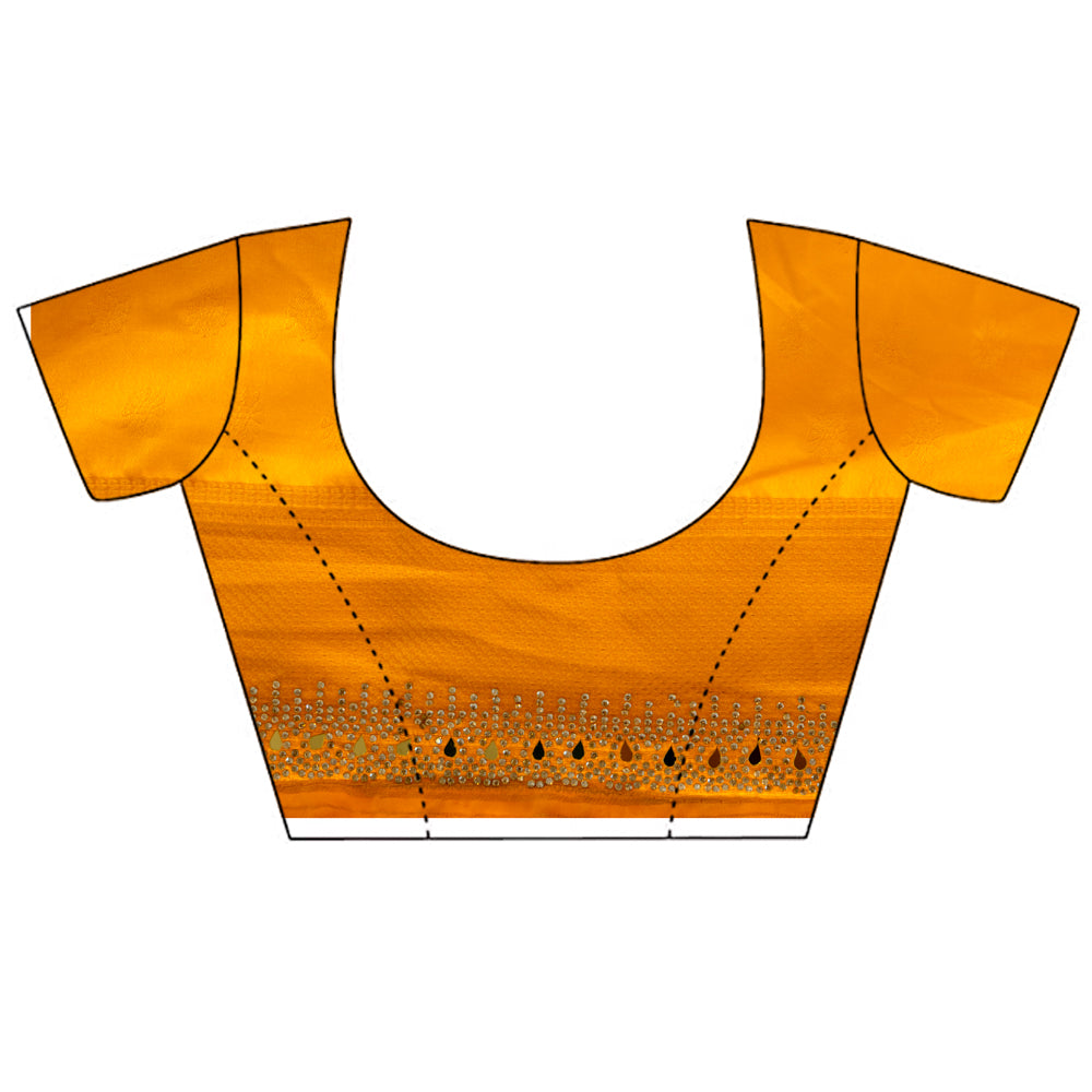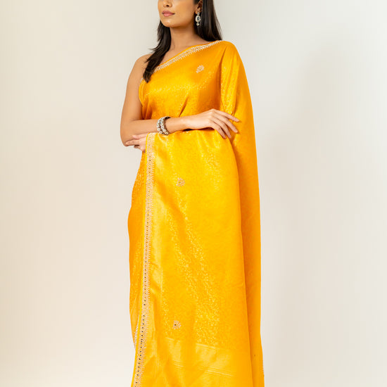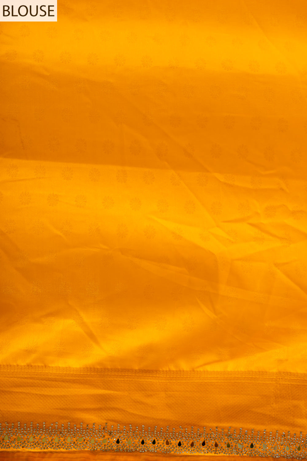 Panna Shine Bright In Mango Gold Banarasi Silk Saree With Unstitched Blouse