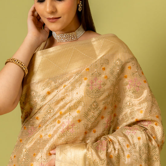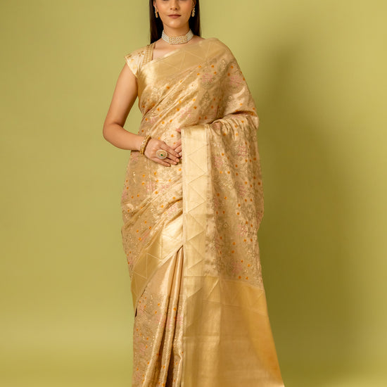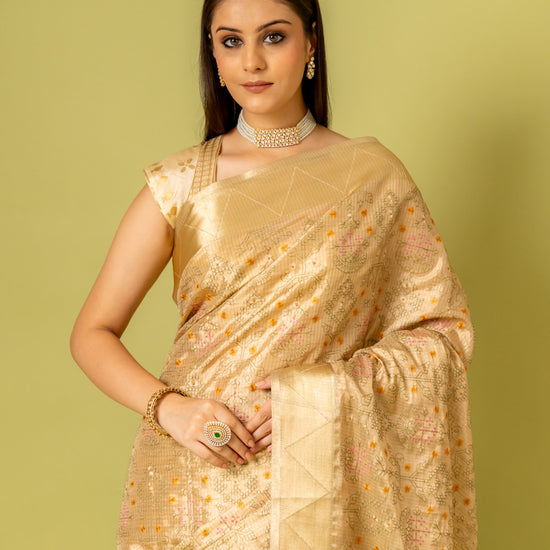 Tussar Banarasi Woven Zari & Threadwork Cotton Saree With Unstitched B – The Panna Shop