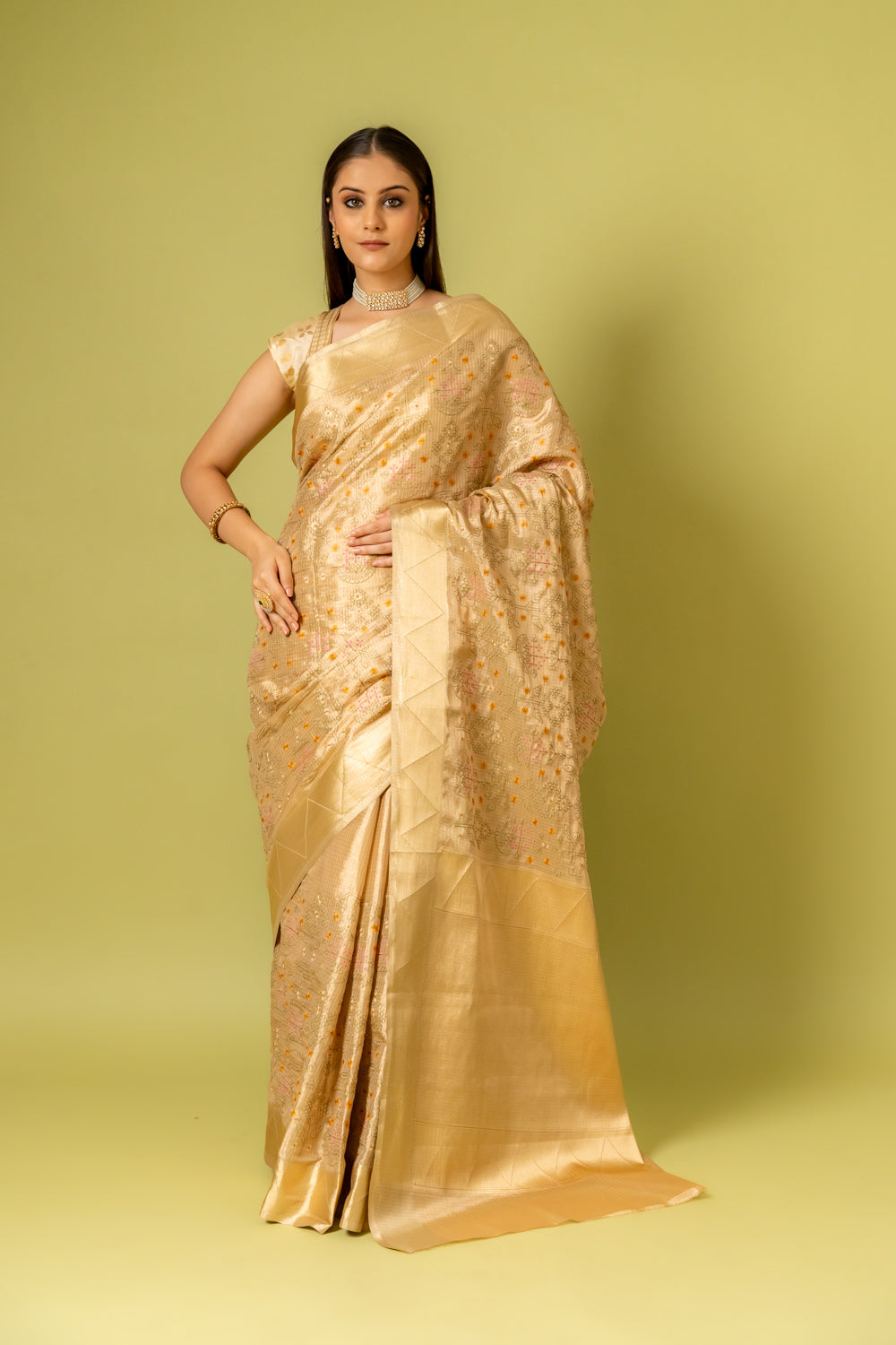 Tussar Banarasi Woven Zari & Threadwork Cotton Saree With Unstitched Blouse