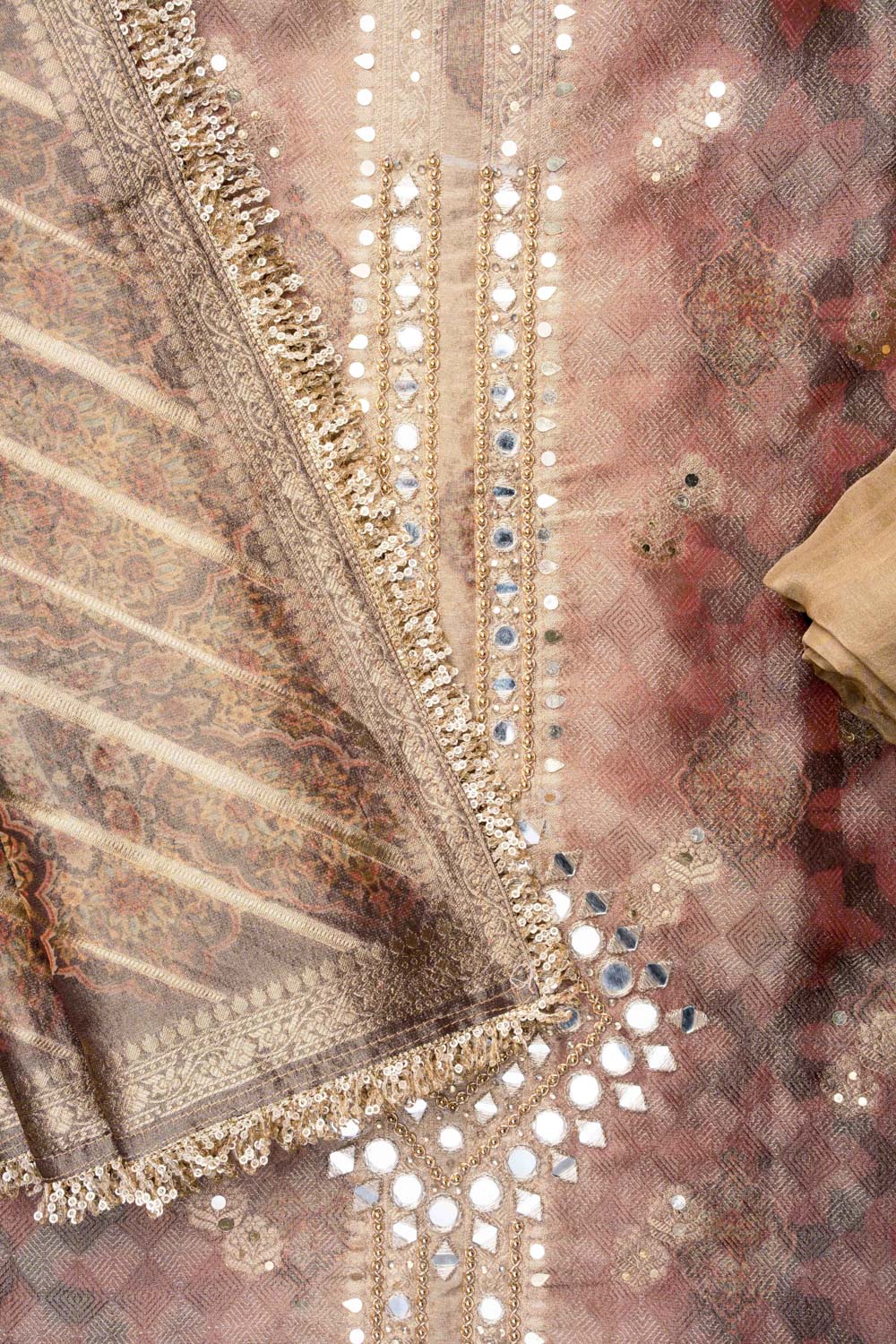 Work : Banarasi Woven Zari, Bead, Digital Print, Dabka, Mirror Sheet, Swarovski & Zari Threadwork