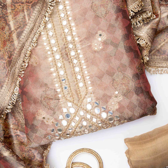 Panna Onion Organza Unstitched Salwar Suit With Organza Dupatta
