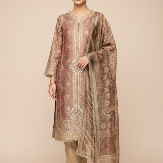Featuring Banarasi Woven Zari, Bead, Digital Print, Dabka, Mirror Sheet, Swarovski & Zari Threadwork, this Organza unstitched suit is perfect for Formal Occasion. The Color Variations and tailoring options offer unparalleled versatility. Preserve with Dry Wash / Dry Clean.