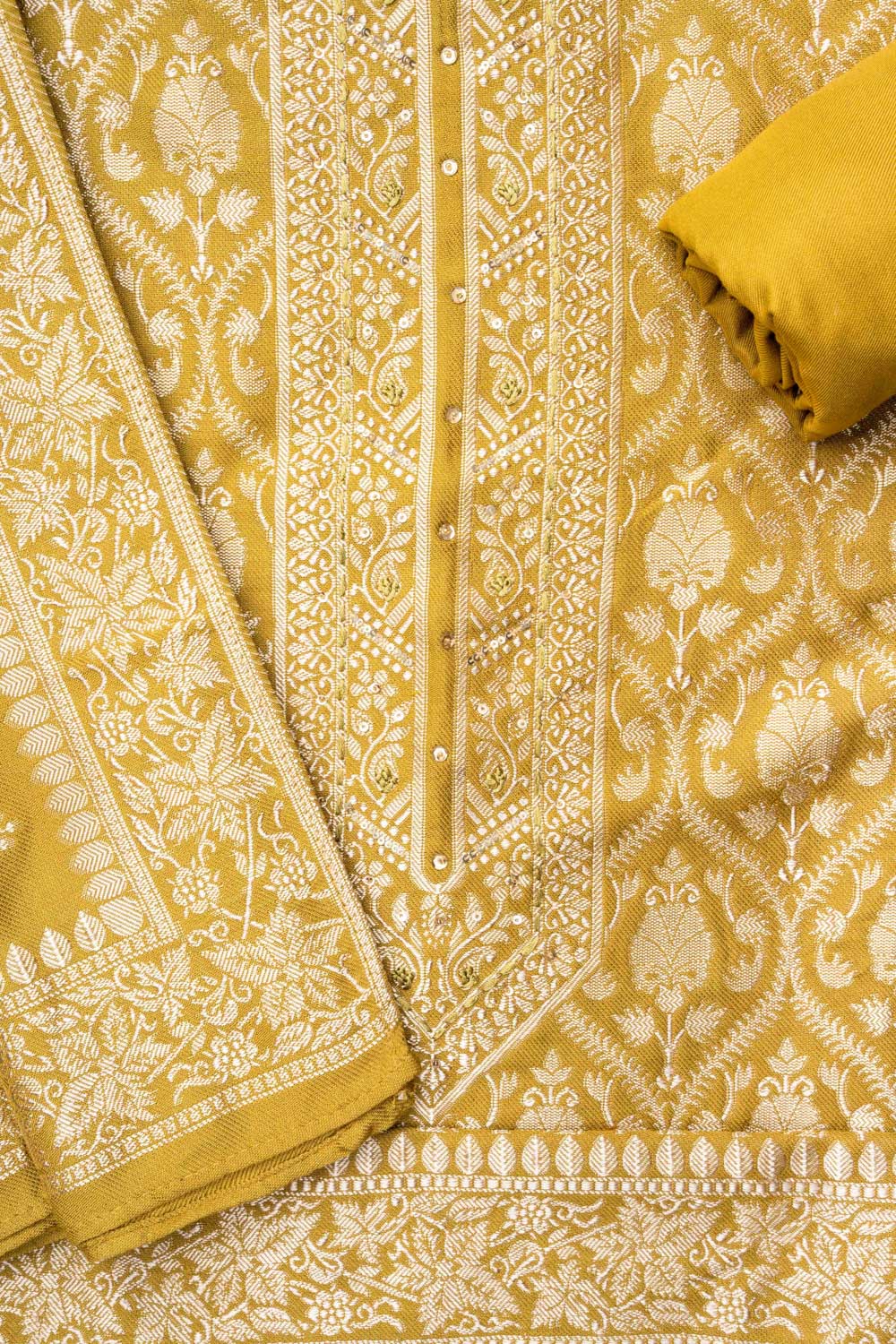 With intricate Bead, Sequence, Threadwork & Woven Zari on luxurious Pashmina, this unstitched suit is tailored for Formal Occasion. The Color Variations make it versatile. Keep it flawless with Dry Wash / Dry Clean.