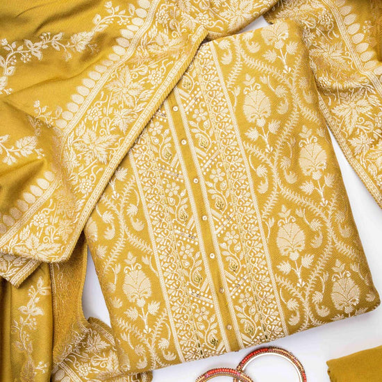 Panna Pista Pashmina Unstitched Salwar Suit With Pashmina Dupatta