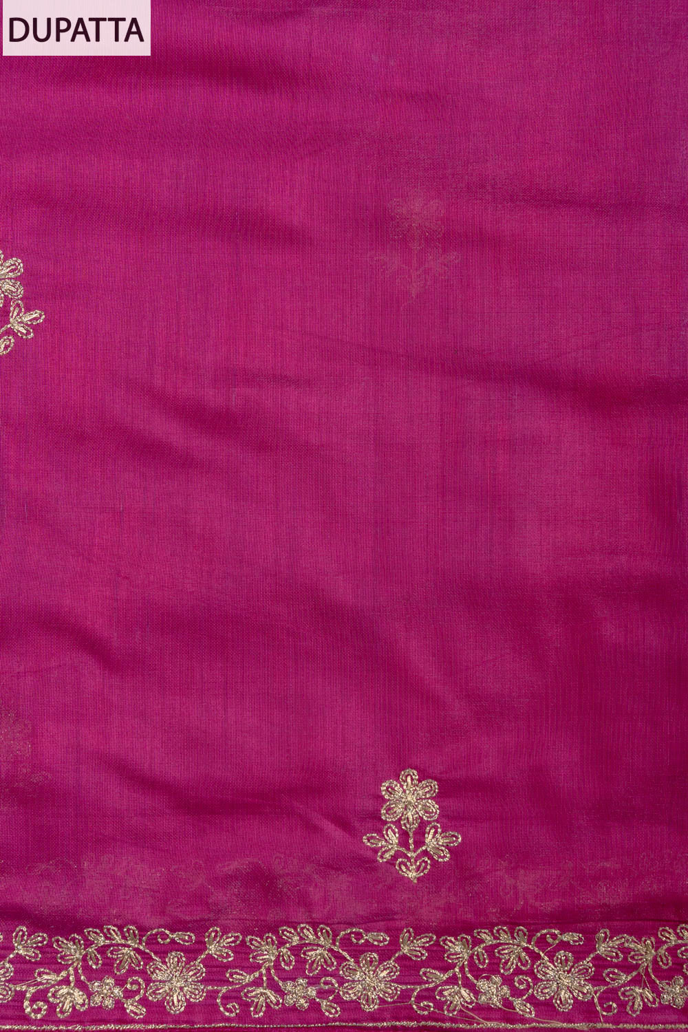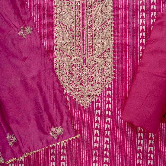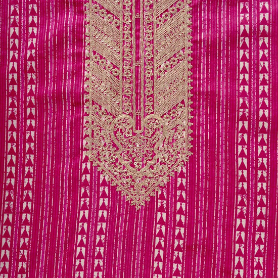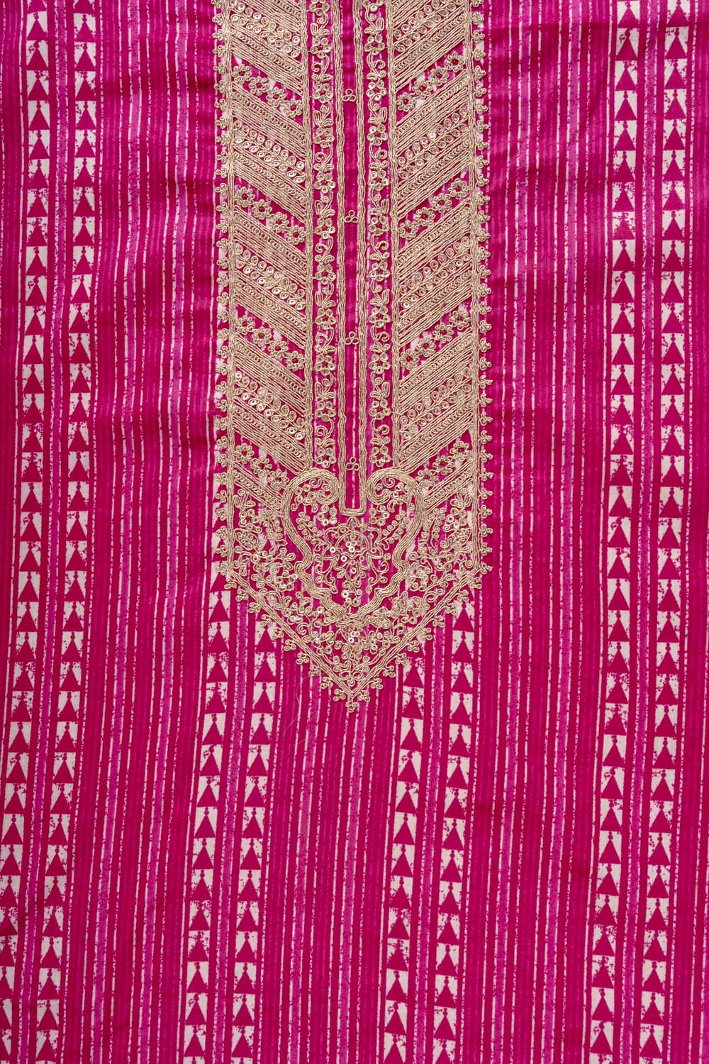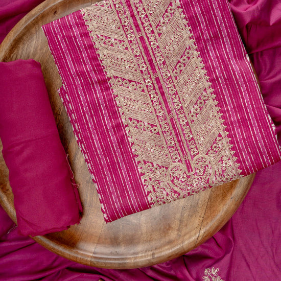 Panna Magenta Sequence, Zari Threadwork & Digital Printed Cotton Unstitched Salwar Suit With Cotton Dupatta