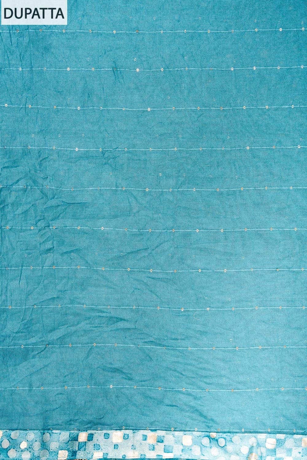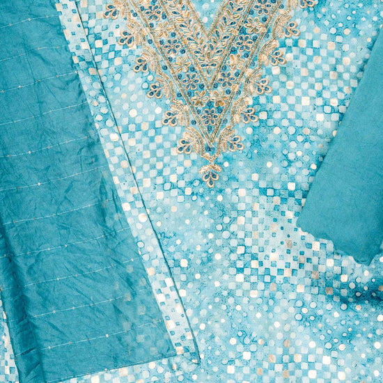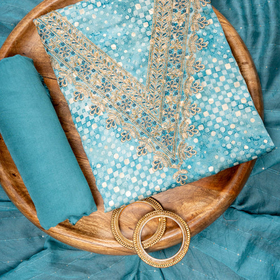 Panna Sky Blue Sequence, Zari Threadwork & Digital Printed Cotton Unstitched Salwar Suit With Cotton Dupatta