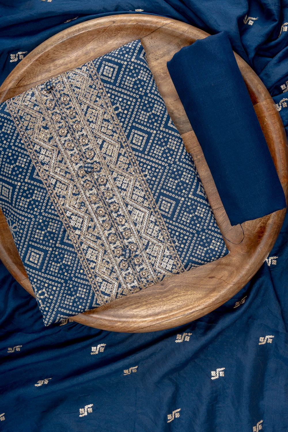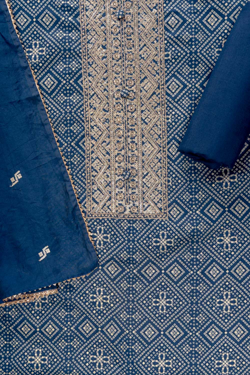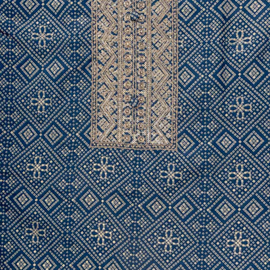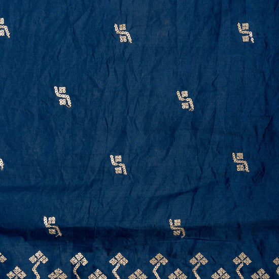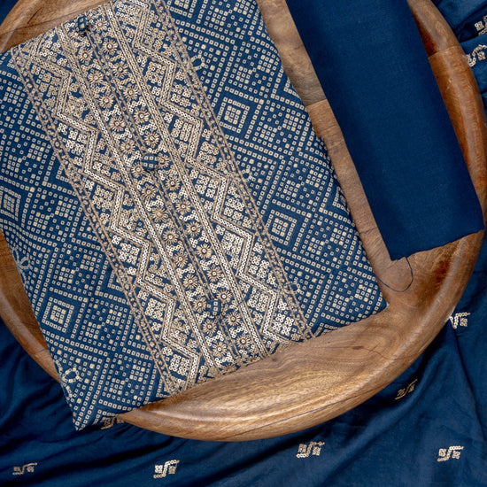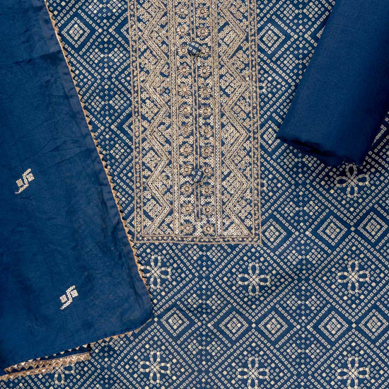 Panna Navy Blue Sequence, Zari Threadwork & Bandhini Printed Cotton Unstitched Salwar Suit With Cotton Dupatta