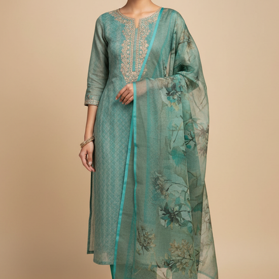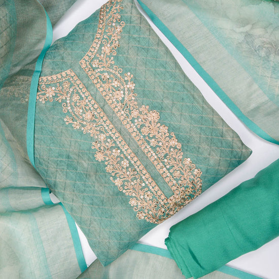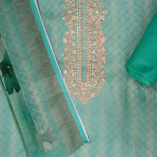 Panna Mint Green Cotton Unstitched Salwar Suit With Cotton Dupatta