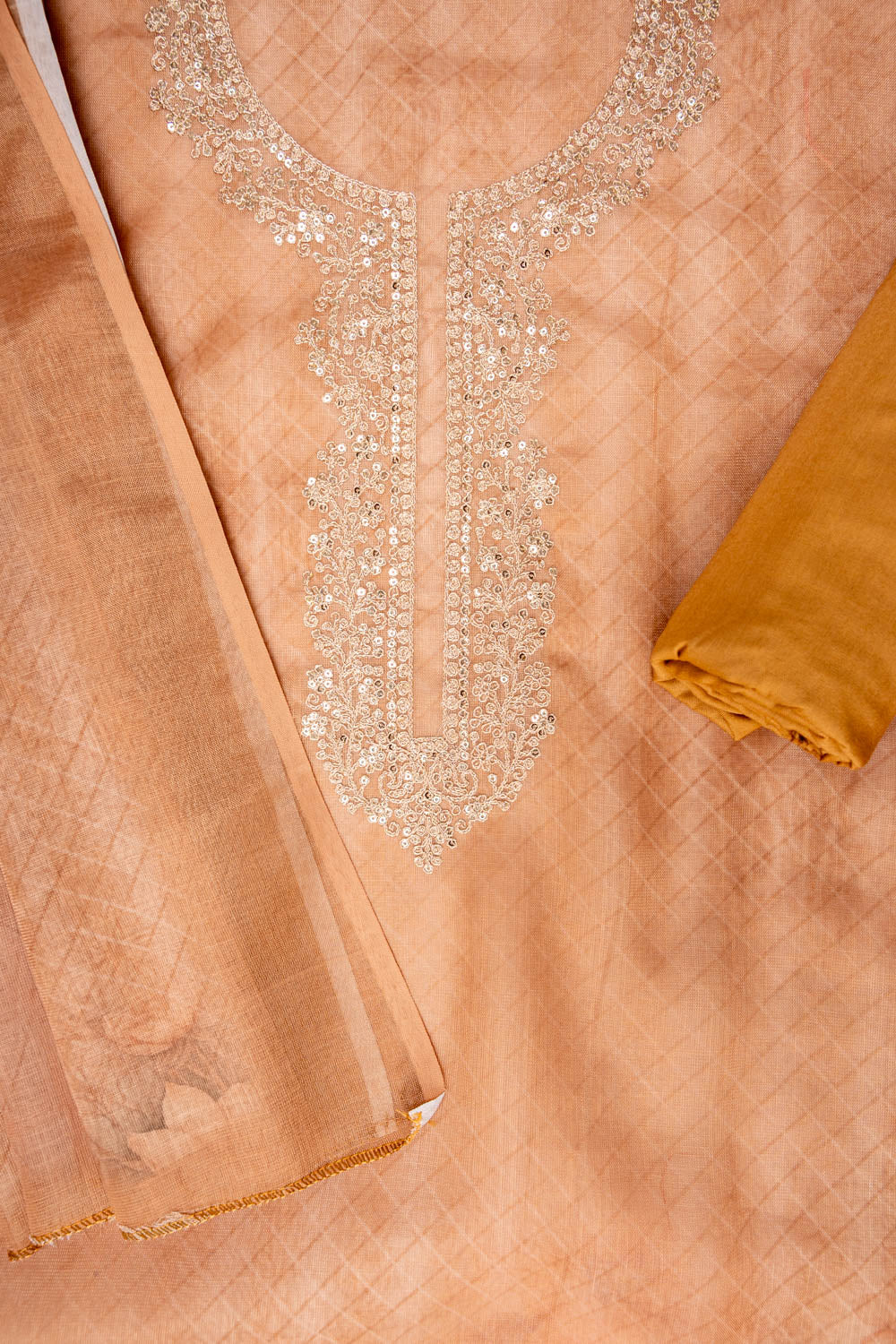 Panna Tussar Cotton Unstitched Salwar Suit With Cotton Dupatta