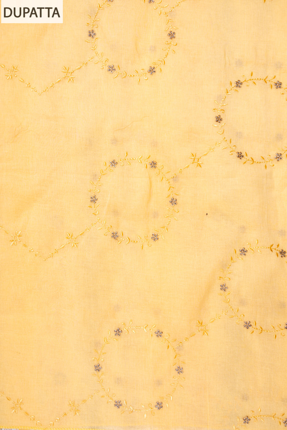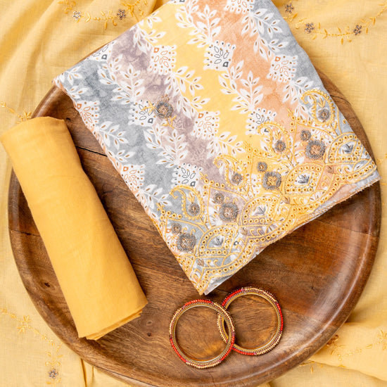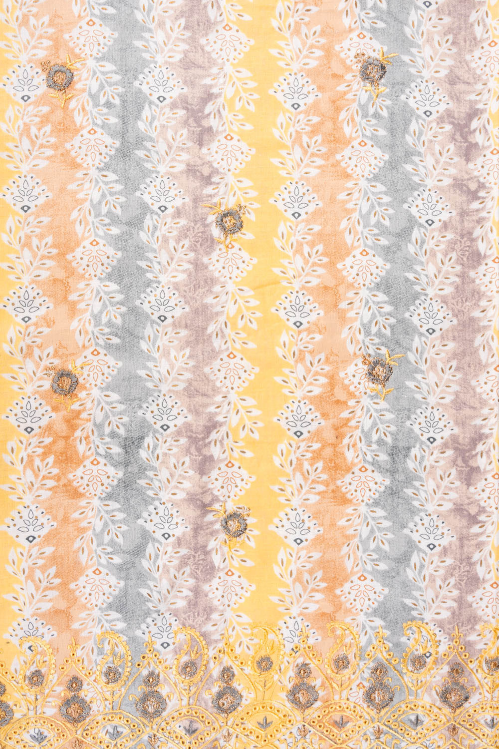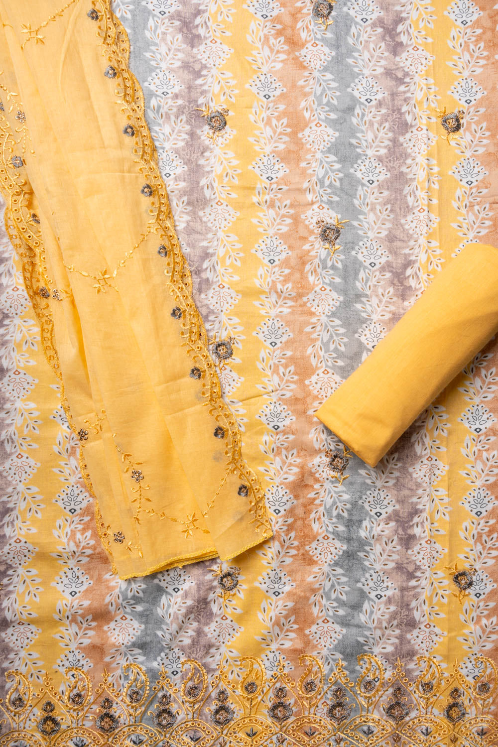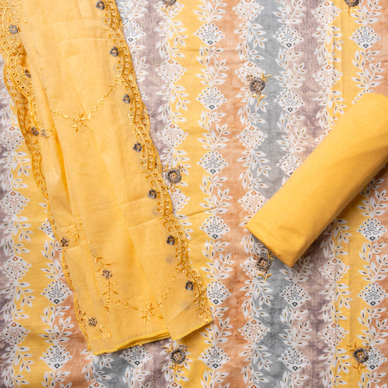 Panna Mango Gold Threadwork & Floral Printed Cotton Unstitched Salwar Suit With Cotton Dupatta