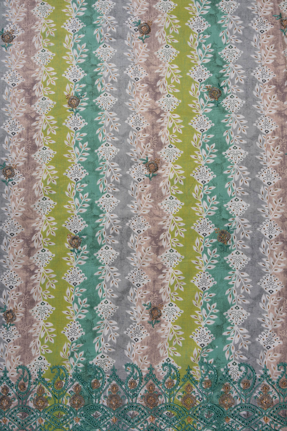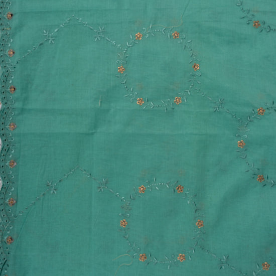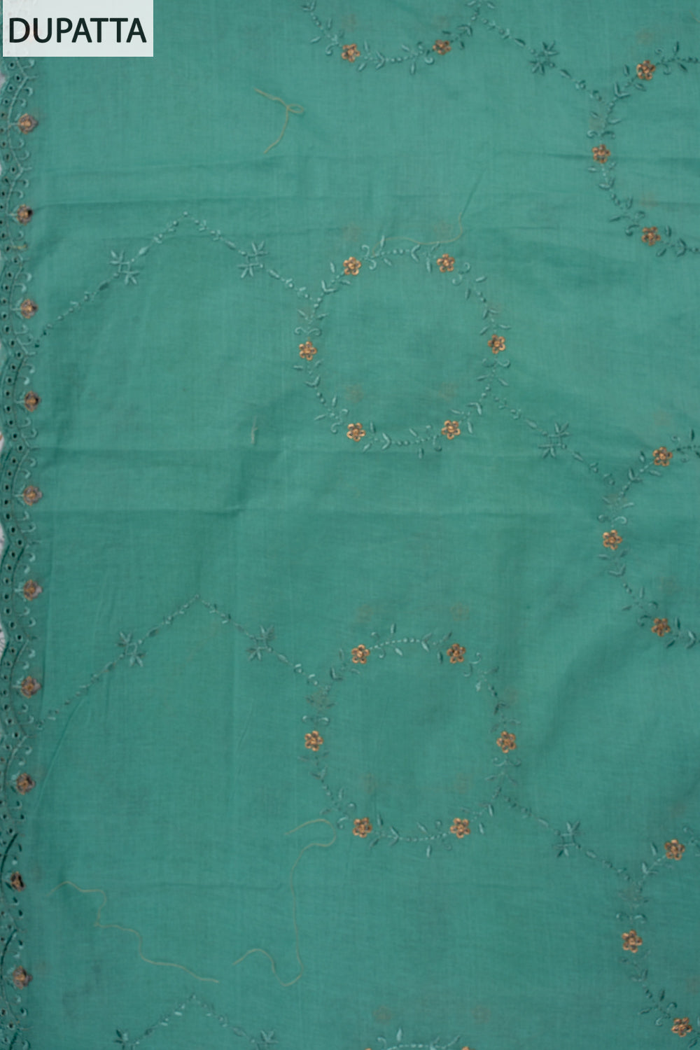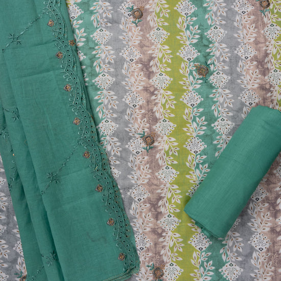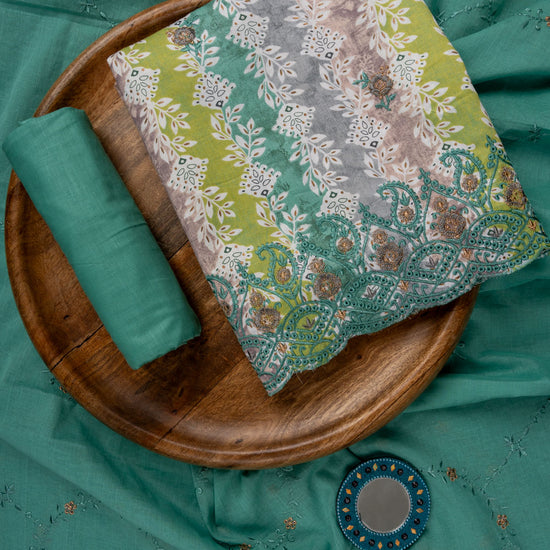 Panna Pista Zari Threadwork & Floral Printed Cotton Unstitched Salwar Suit With Cotton Dupatta