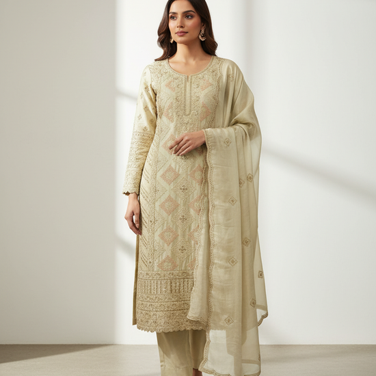 Unveil timeless grace with this exquisite Organza Unstitched Suit Set, a perfect fusion of elegance and craftsmanship. Made from luxurious organza fabric, it carries a lightweight texture and a subtle sheen that drapes beautifully, exuding refined sophistication.