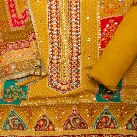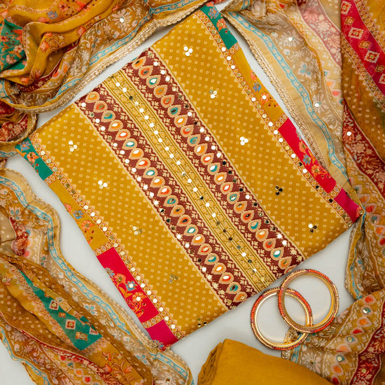 Panna Sunshine Charm Mustard Crepe Unstitched Salwar Kameez With Chiffon Dupatta
