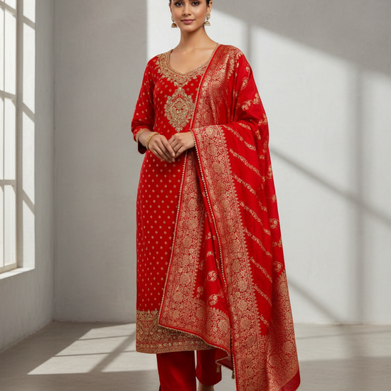 Panna Grace Redefined Red Dolna Unstitched Salwar Kameez with Dolna Dupatta