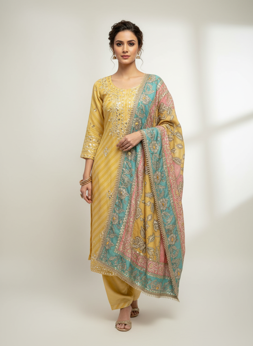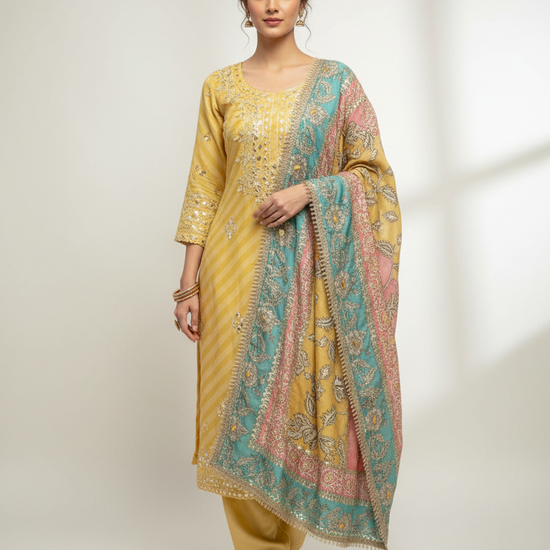 Panna Sunshine Charm Mustard Dolna Unstitched Salwar Kameez with Chinon Dupatta