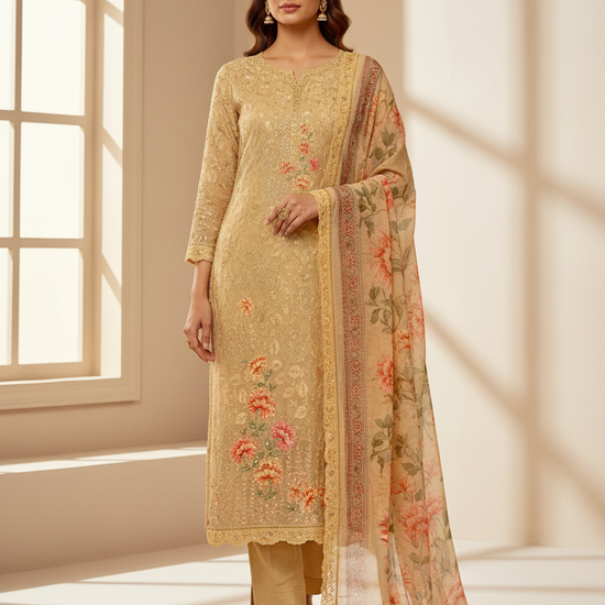 Panna Timeless Beauty Tussar Georgette Unstitched Suit With Chiffon Dupatta