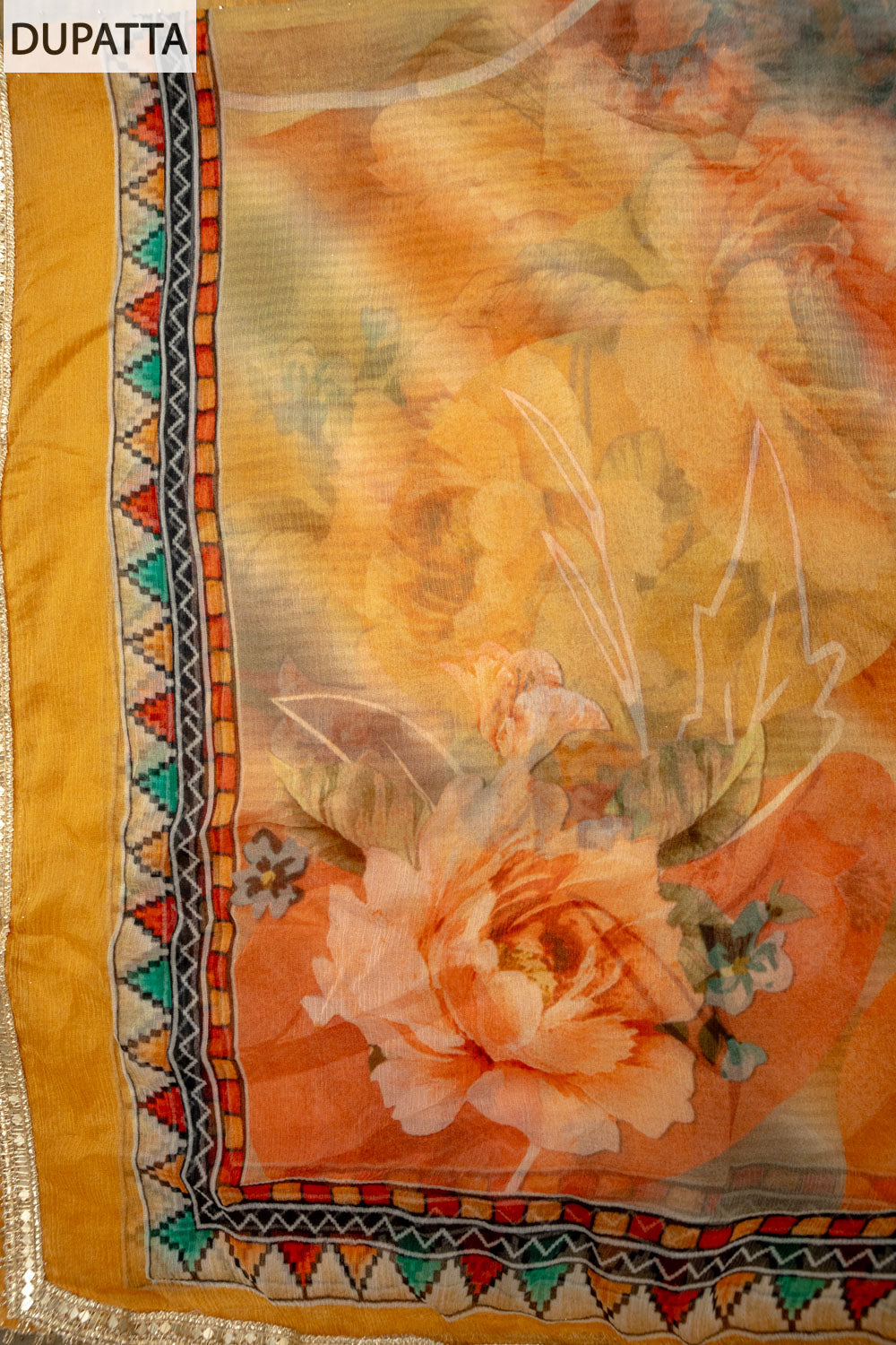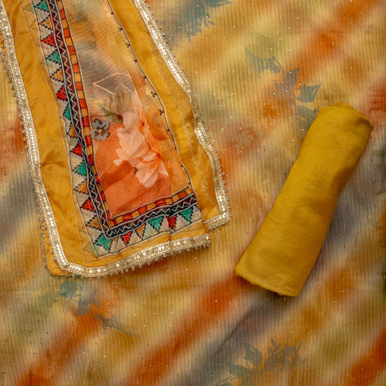 Panna Sunshine Charm Mustard Organza Unstitched Salwar Kameez With Chiffon Dupatta