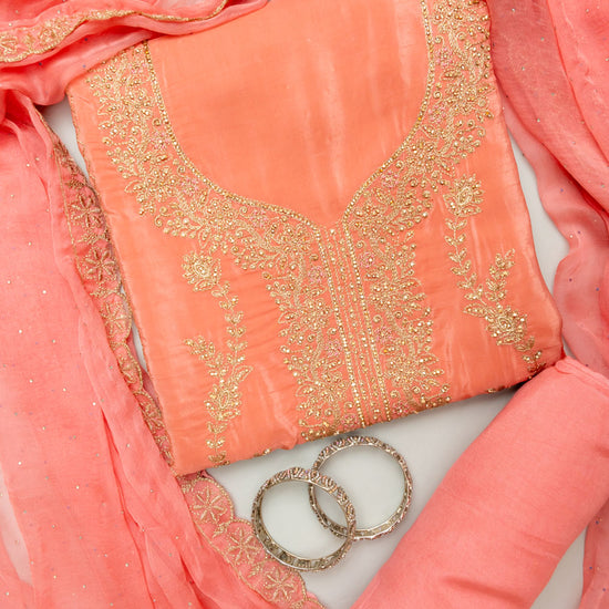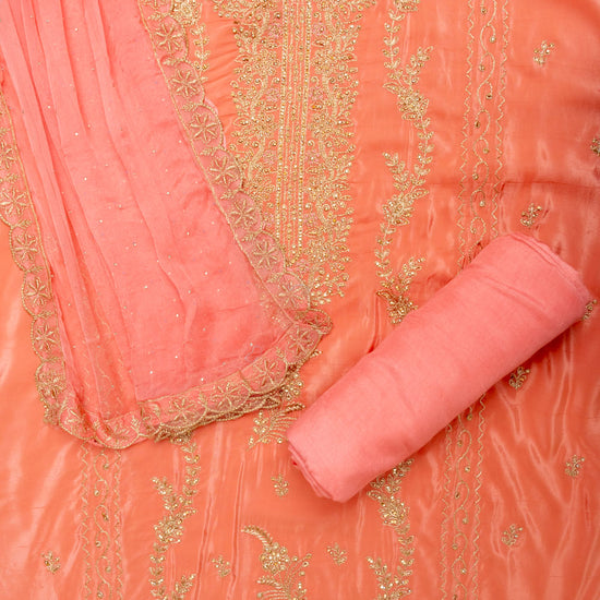 Panna Graceful Flow Peach Unstitched Crepe Salwar Kameez With Chiffon Dupatta