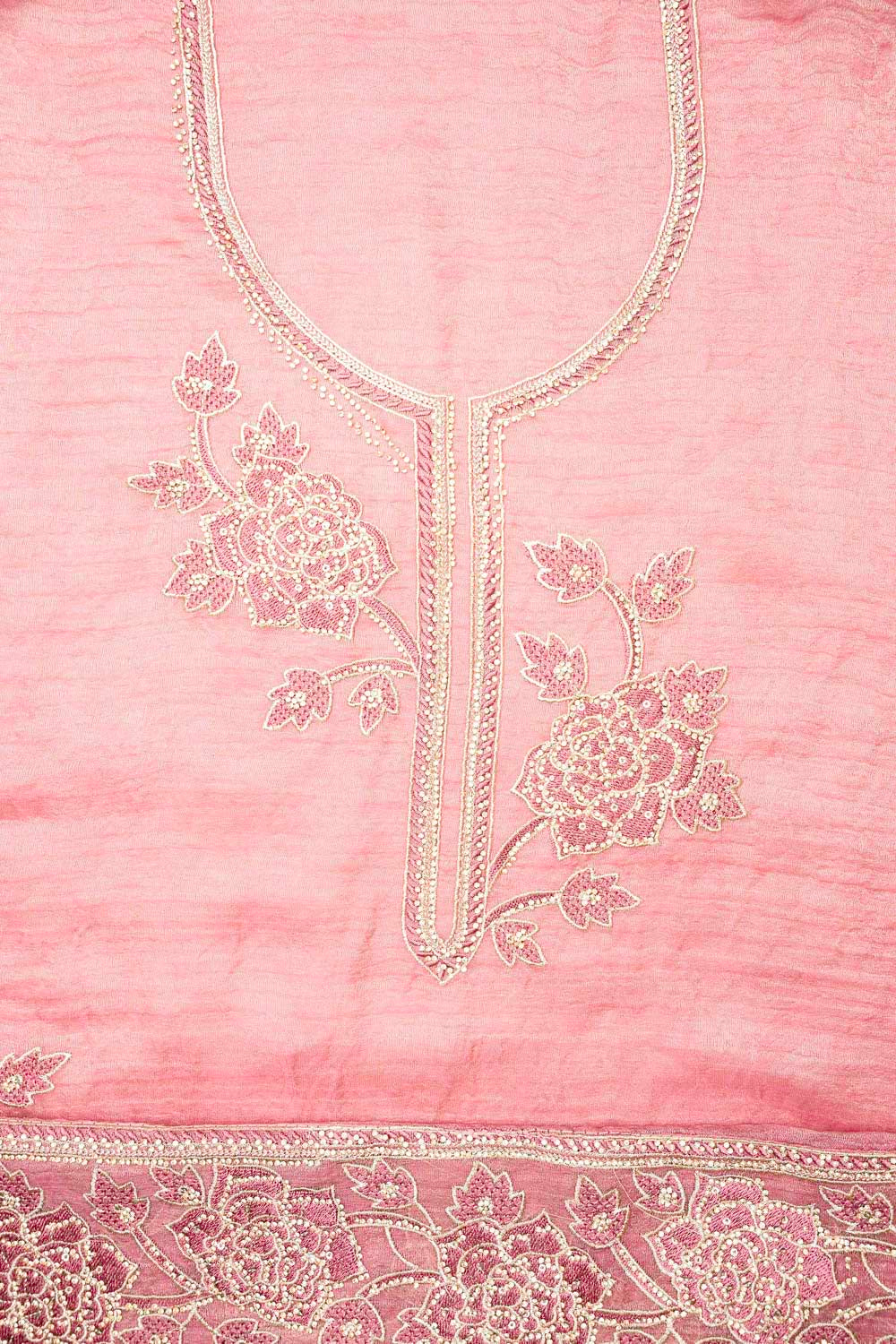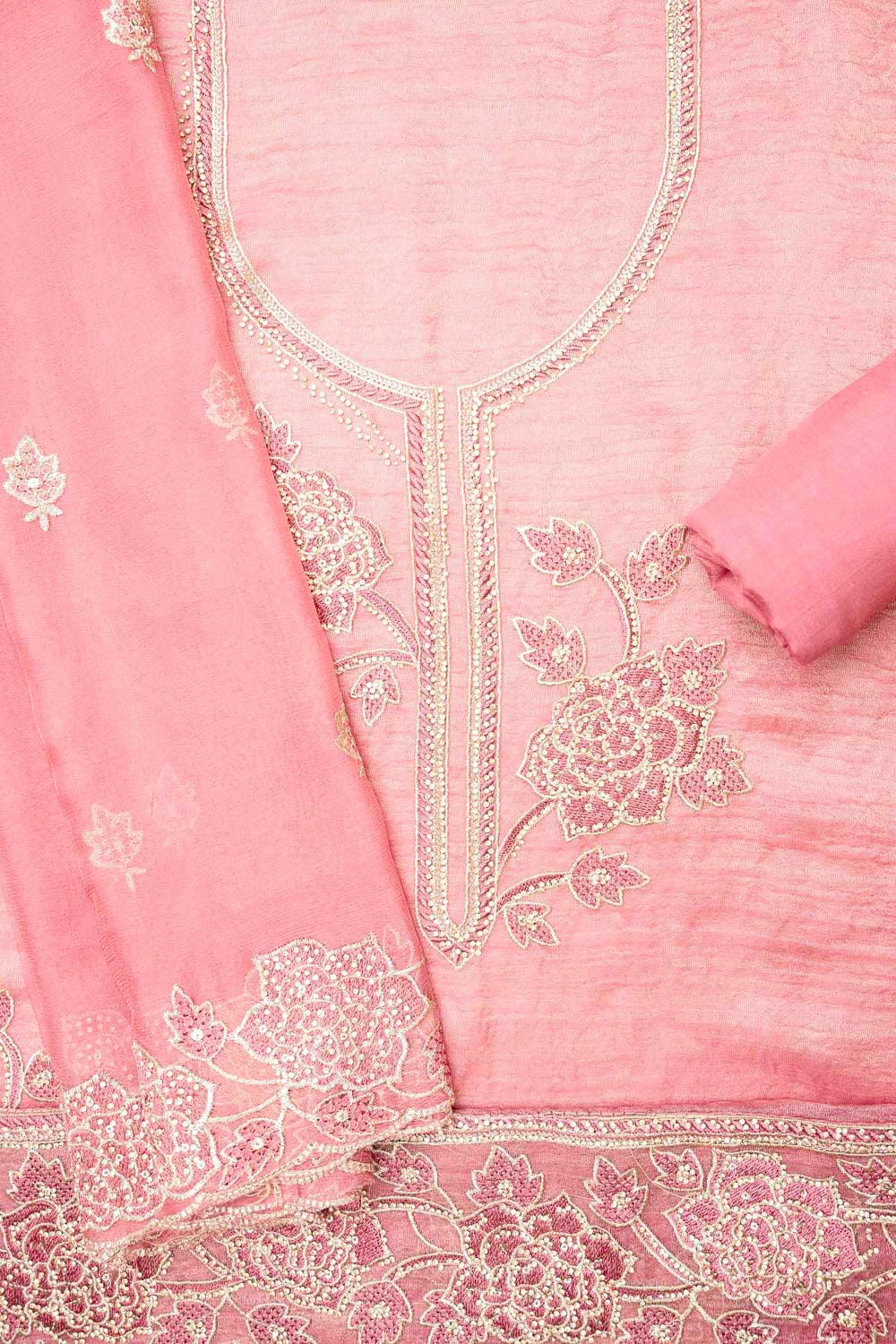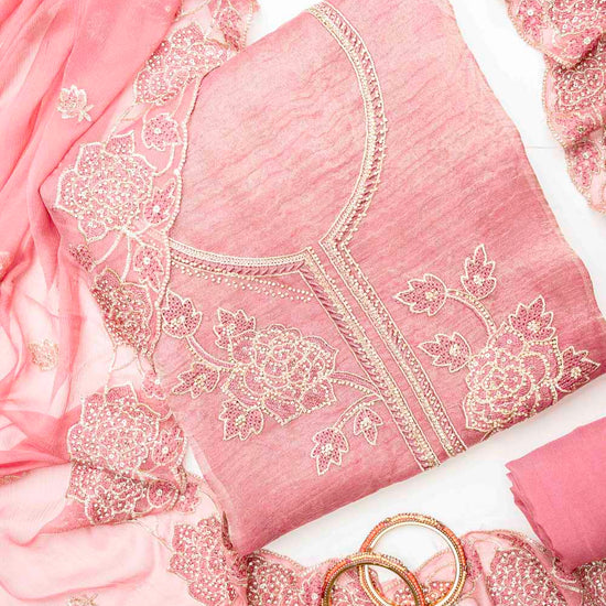 Panna Gajari Organza Unstitched Salwar Suit With Chiffon Dupatta