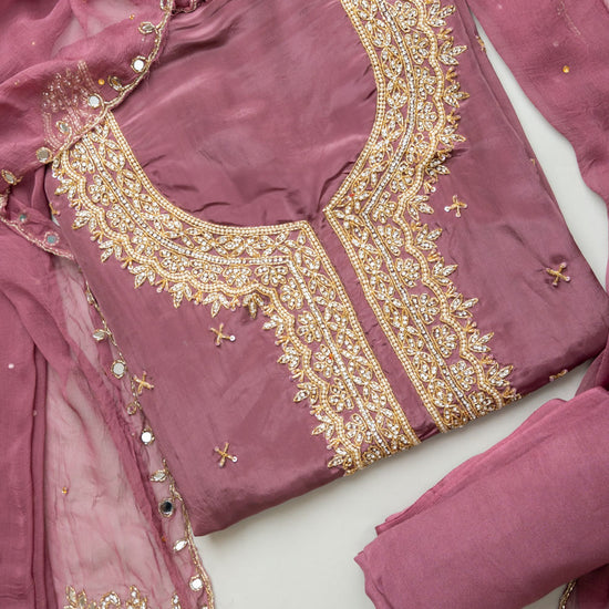 Panna Delicate And Dreamy Mauve Unstitched Crepe Salwar Kameez With Chiffon Dupatta