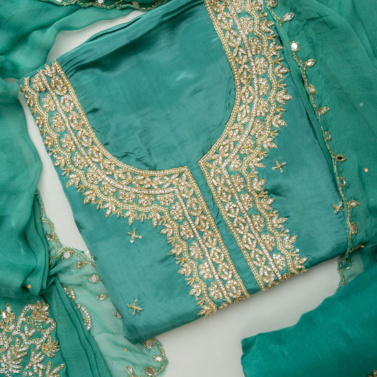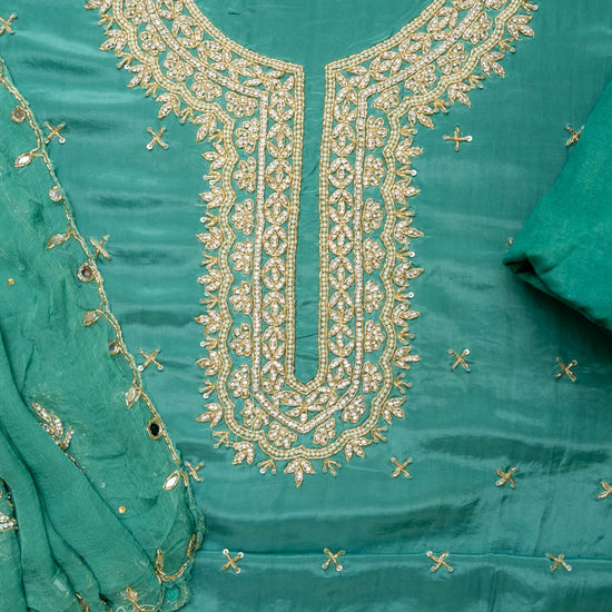 Panna Breathe In Elegance With Mint Green Crepe Unstitched Salwar Kameez With Chiffon Dupatta