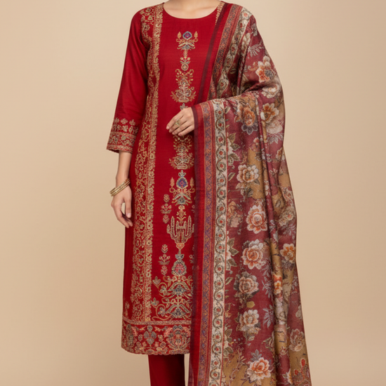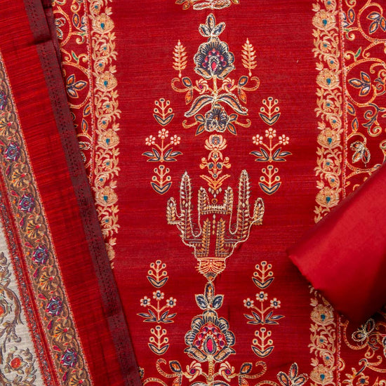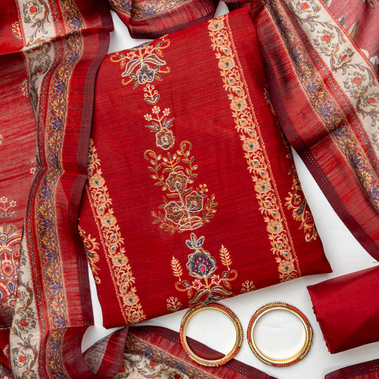 Panna Maroon Muslin Crepe Unstitched Salwar Suit With Muslin Crepe Dupatta