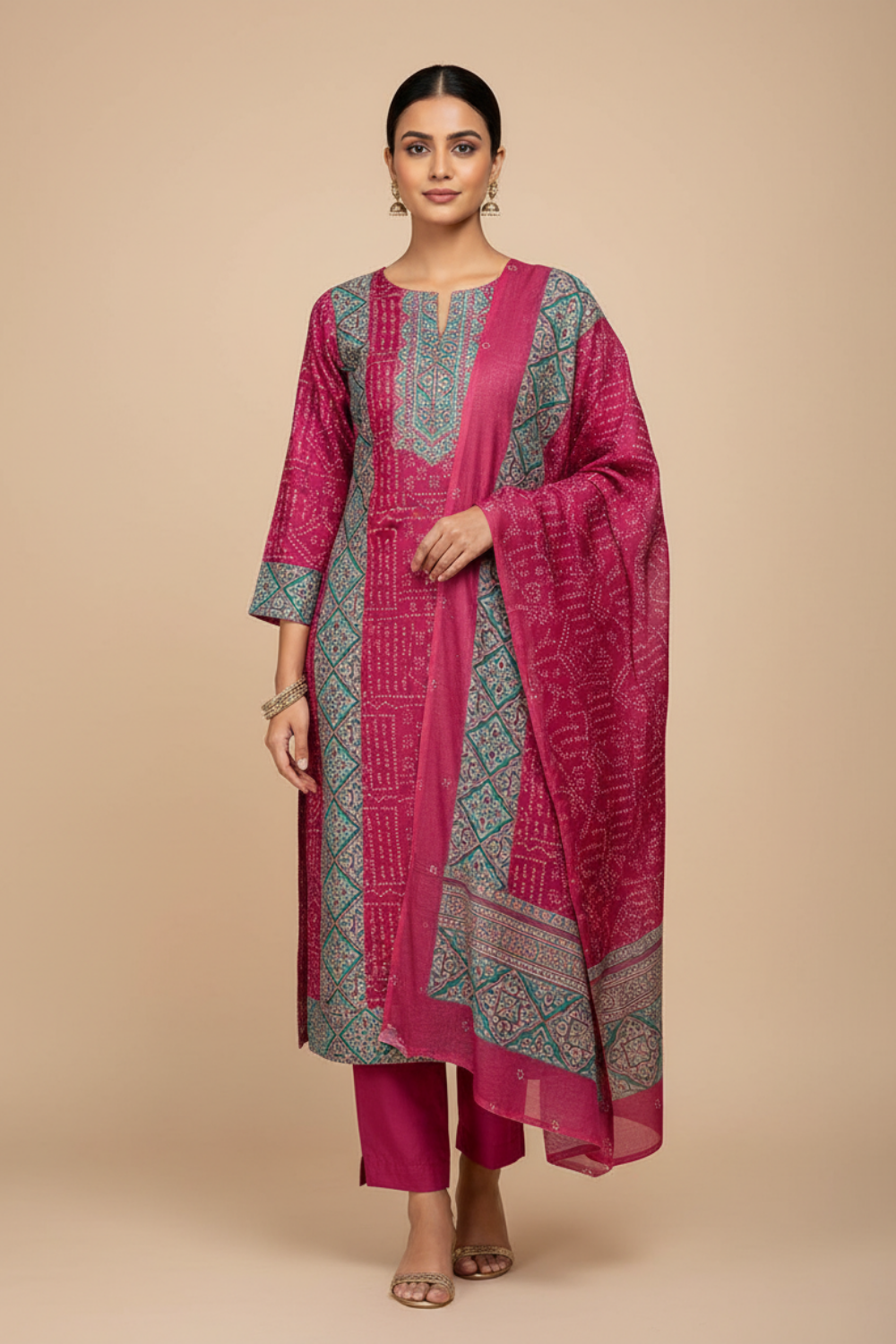 Panna Garnet Cotton Unstitched Salwar Suit With Cotton Dupatta