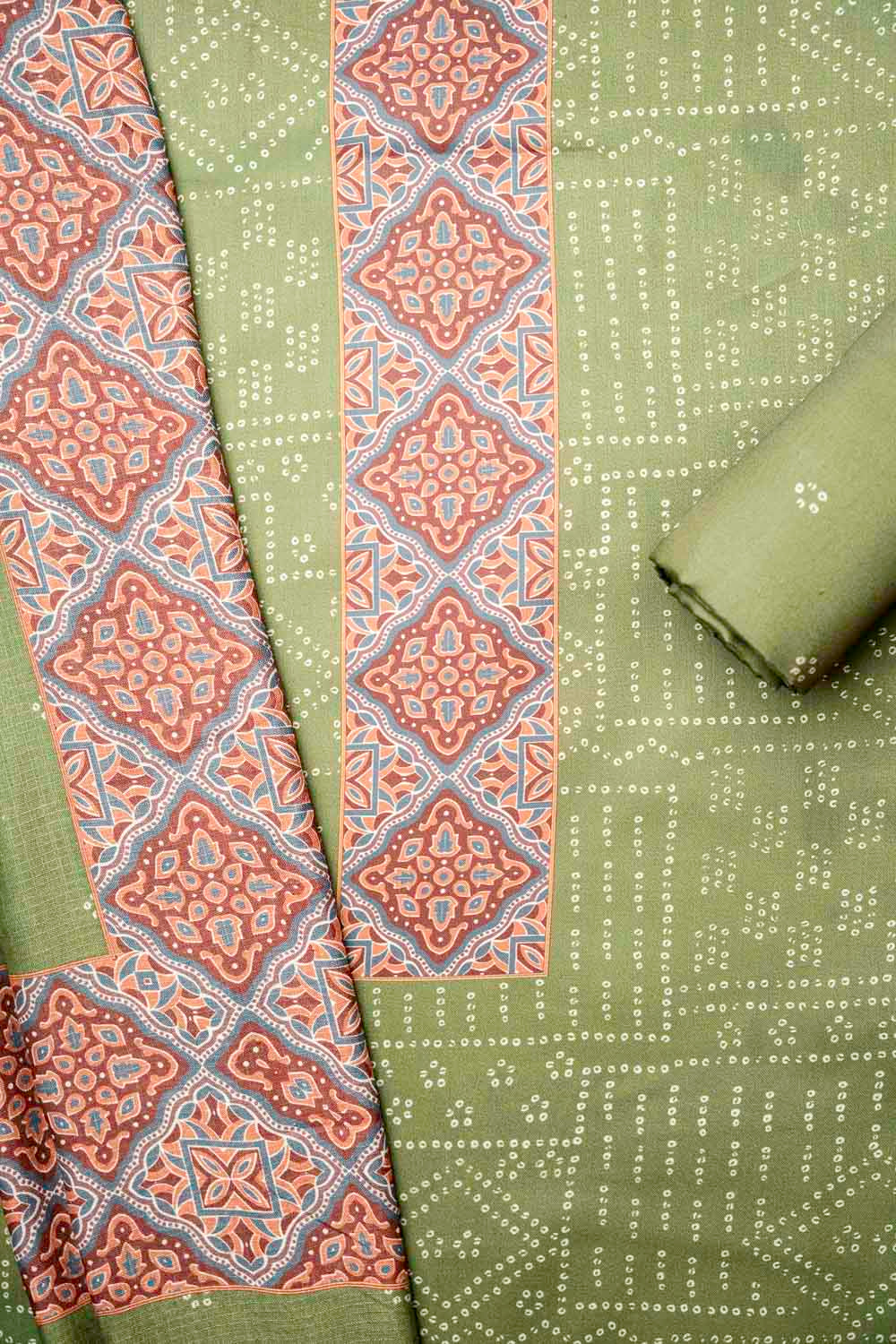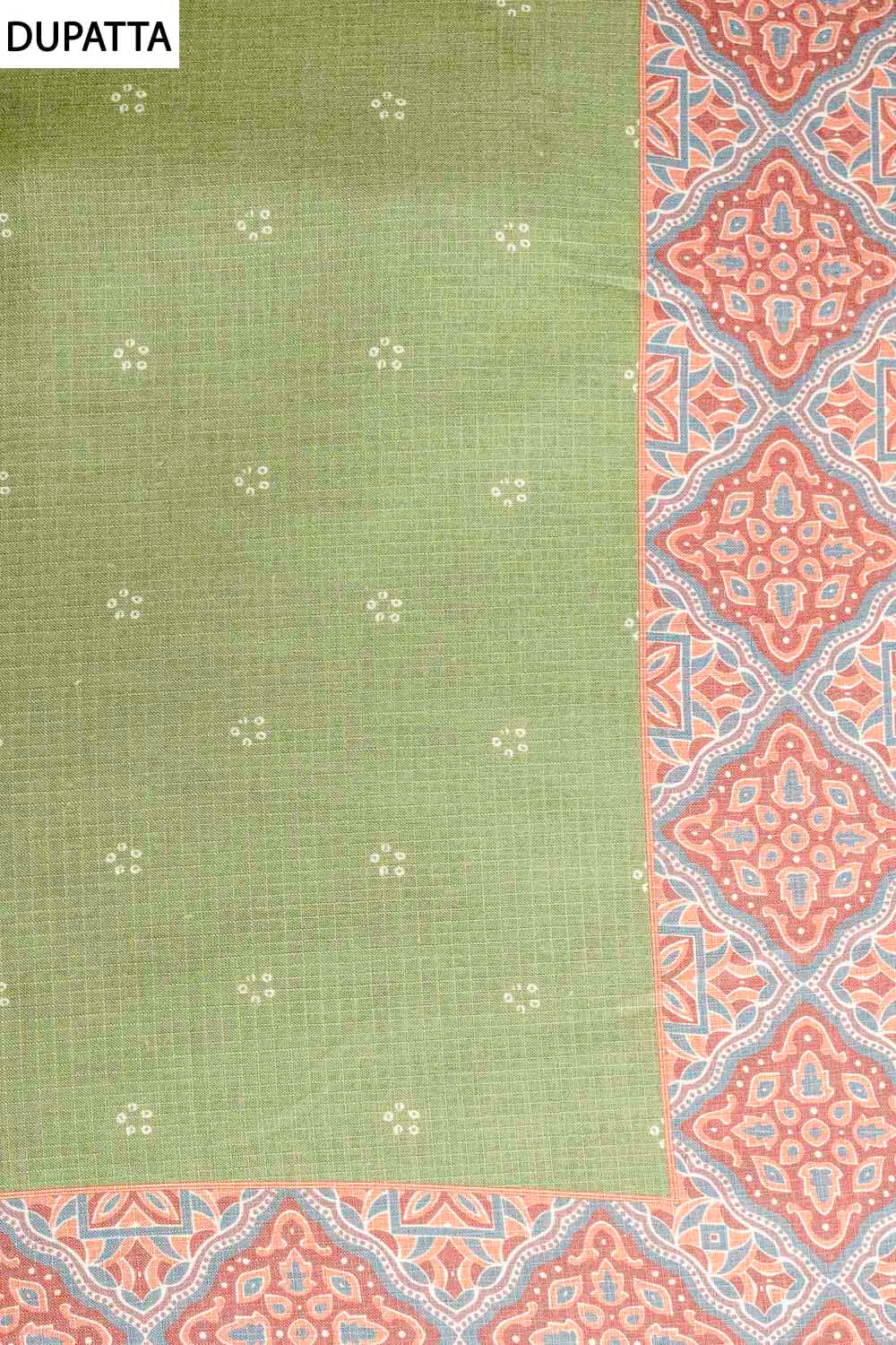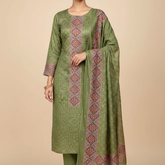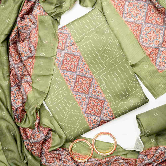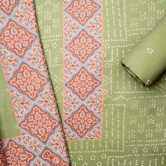 Panna Mehndi Cotton Unstitched Salwar Suit With Cotton Dupatta