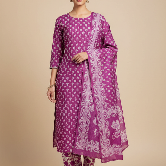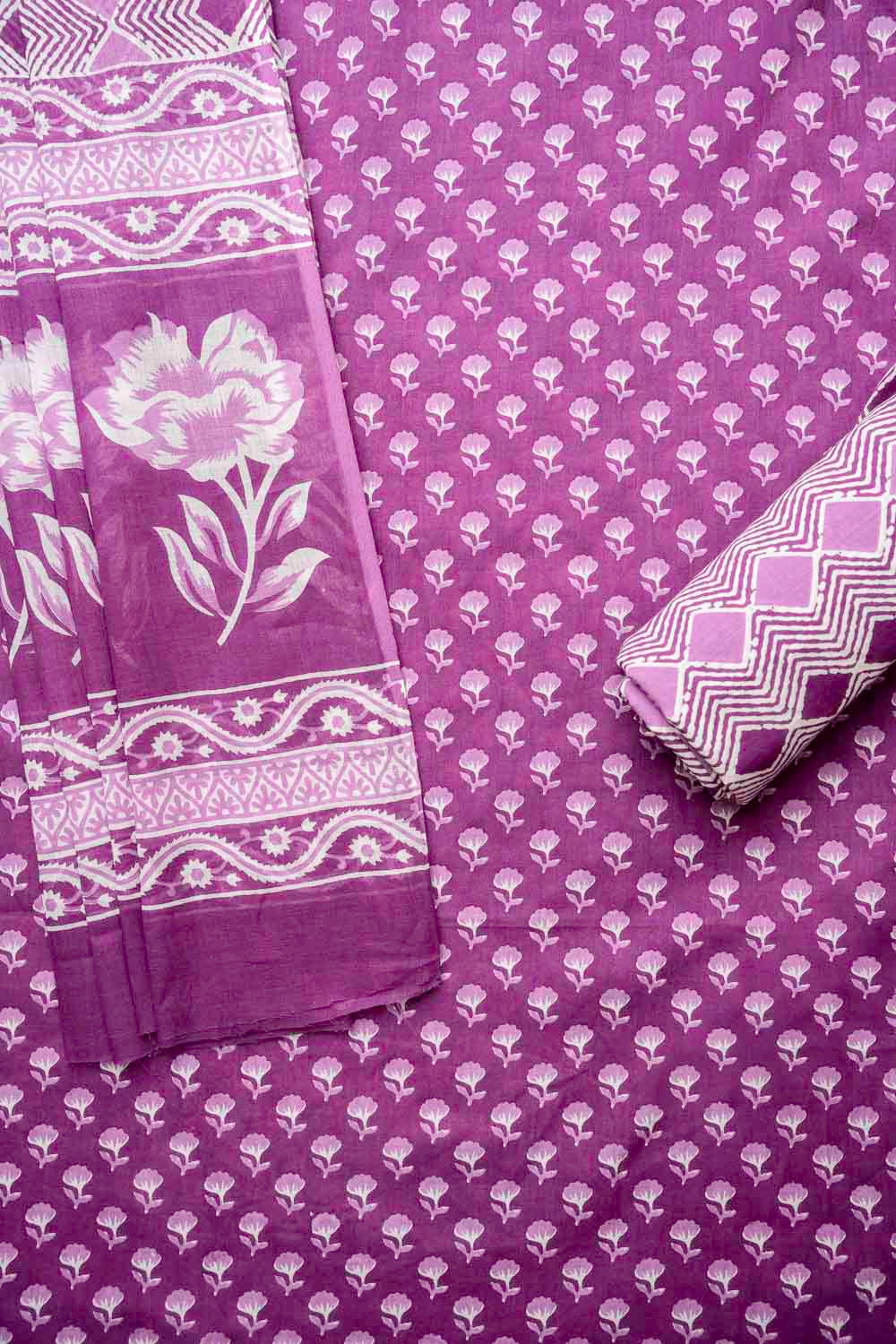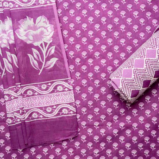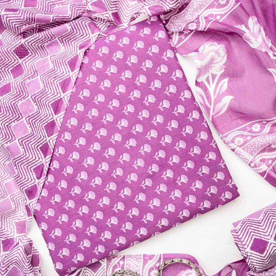 Panna Mauve Cotton Unstitched Salwar Suit With Cotton Dupatta