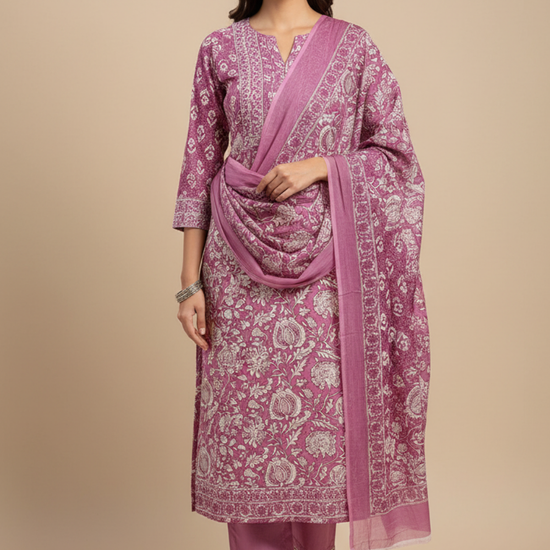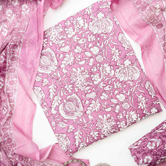 Panna Mauve Cotton Unstitched Salwar Suit With Cotton Dupatta