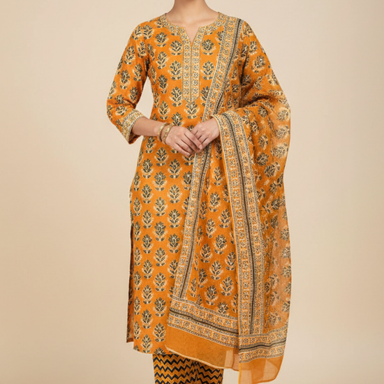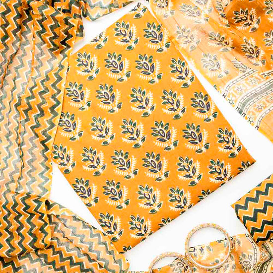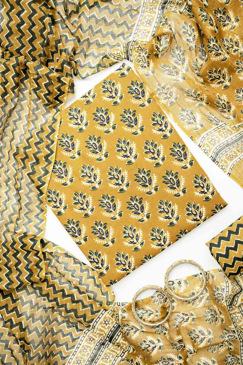 Panna Mustard Cotton Unstitched Salwar Suit With Cotton Dupatta