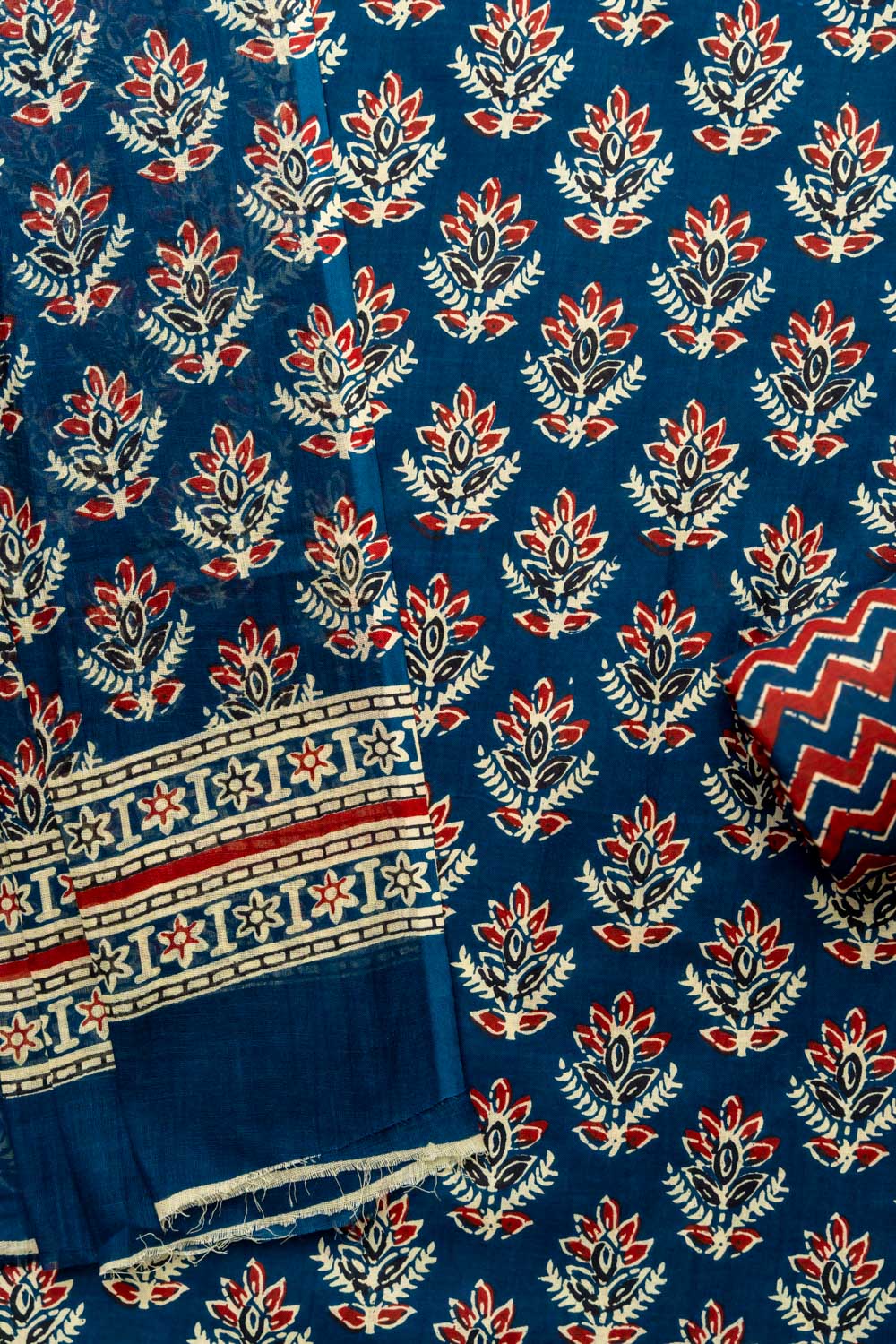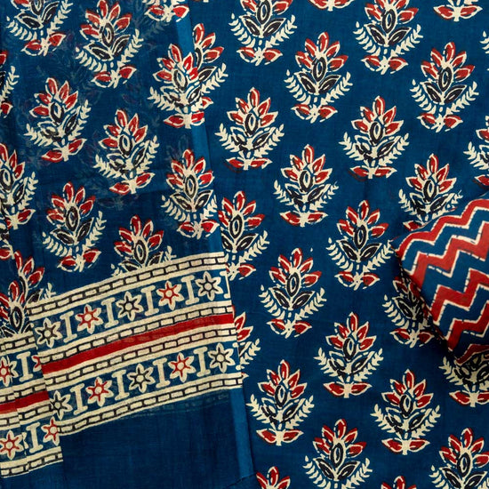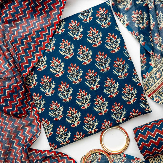 Panna Navy Blue Cotton Unstitched Salwar Suit With Cotton Dupatta