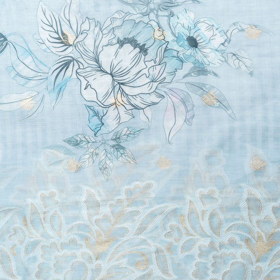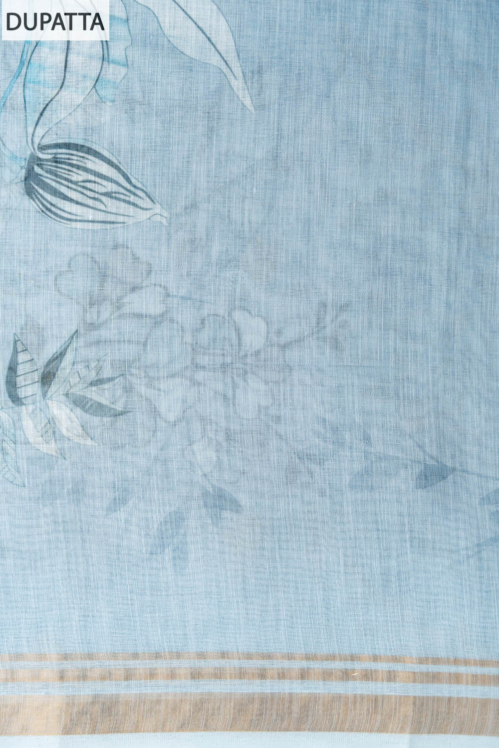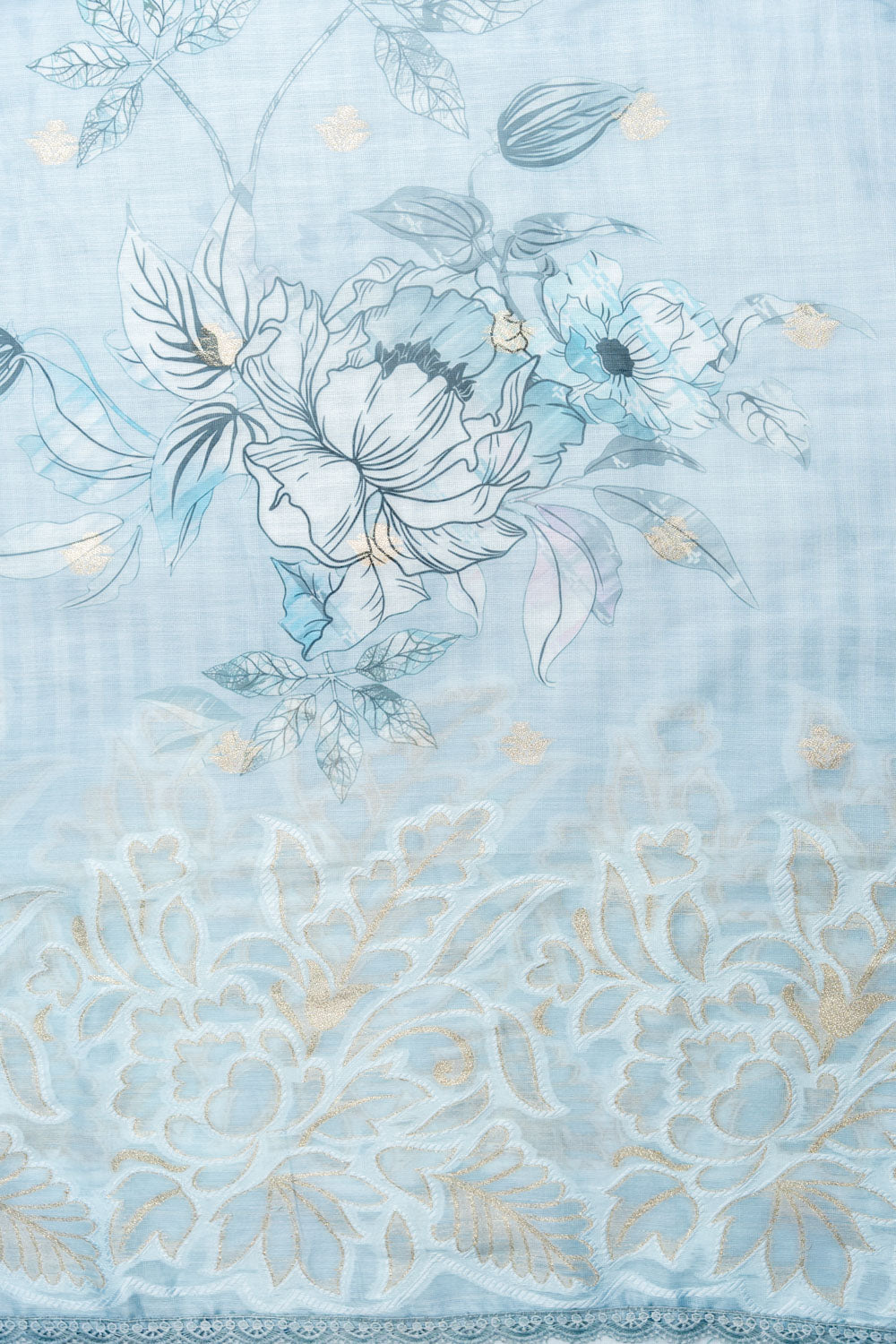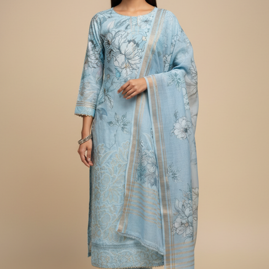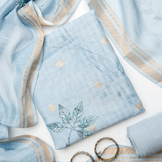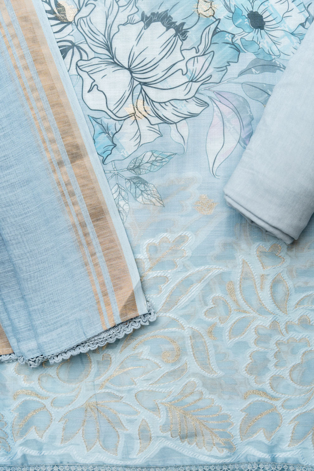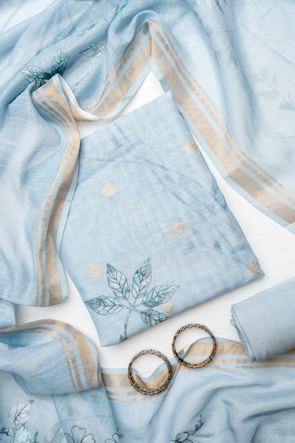 Panna Sky Blue Cotton Unstitched Salwar Suit With Cotton Dupatta