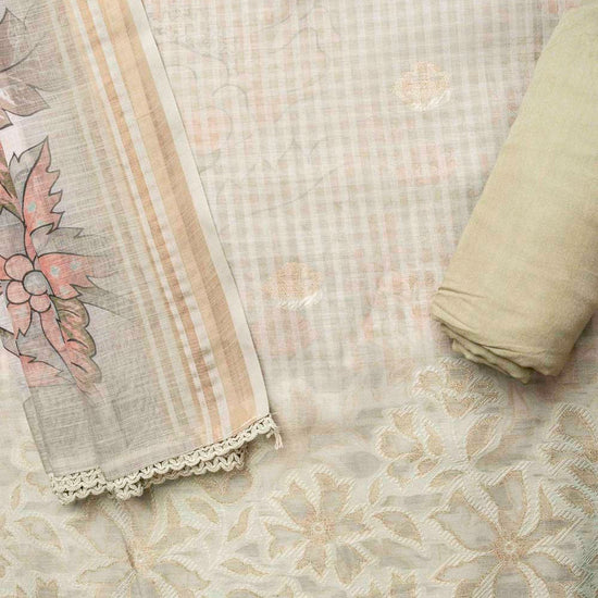 Panna Olive Cotton Unstitched Salwar Suit With Cotton Dupatta