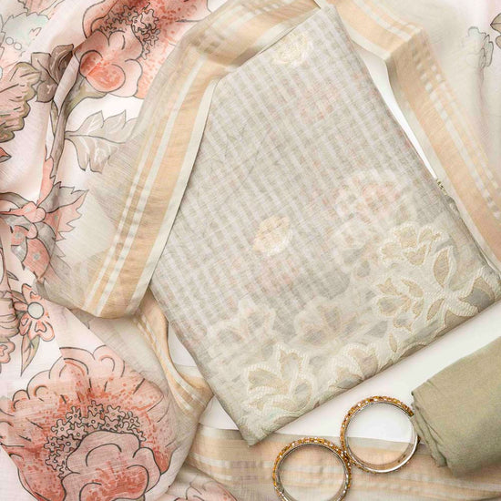 Made from Cotton, this suit with Banarasi Woven Zari & Floral Print combines elegance with ease for Informal Occasion. Its Color Variations and tailoring options make it a wardrobe staple. Dry Wash / Dry Clean advised.