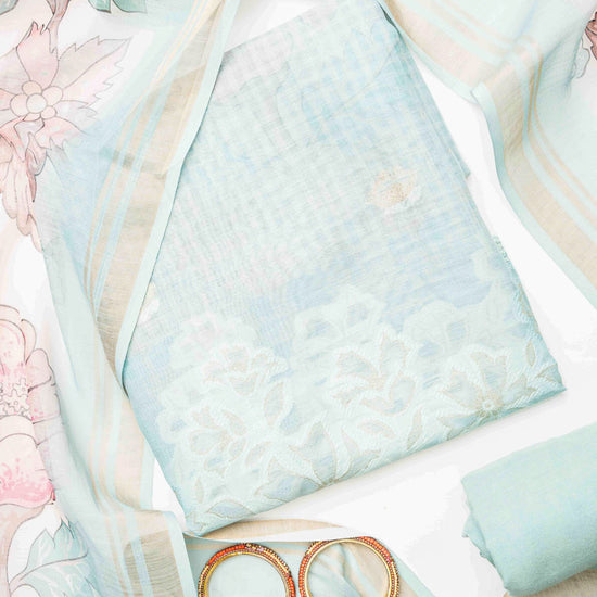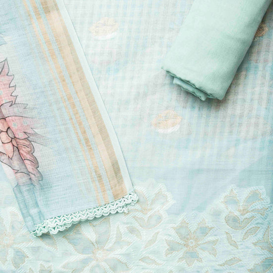 Panna Tea Green Cotton Unstitched Salwar Suit With Cotton Dupatta