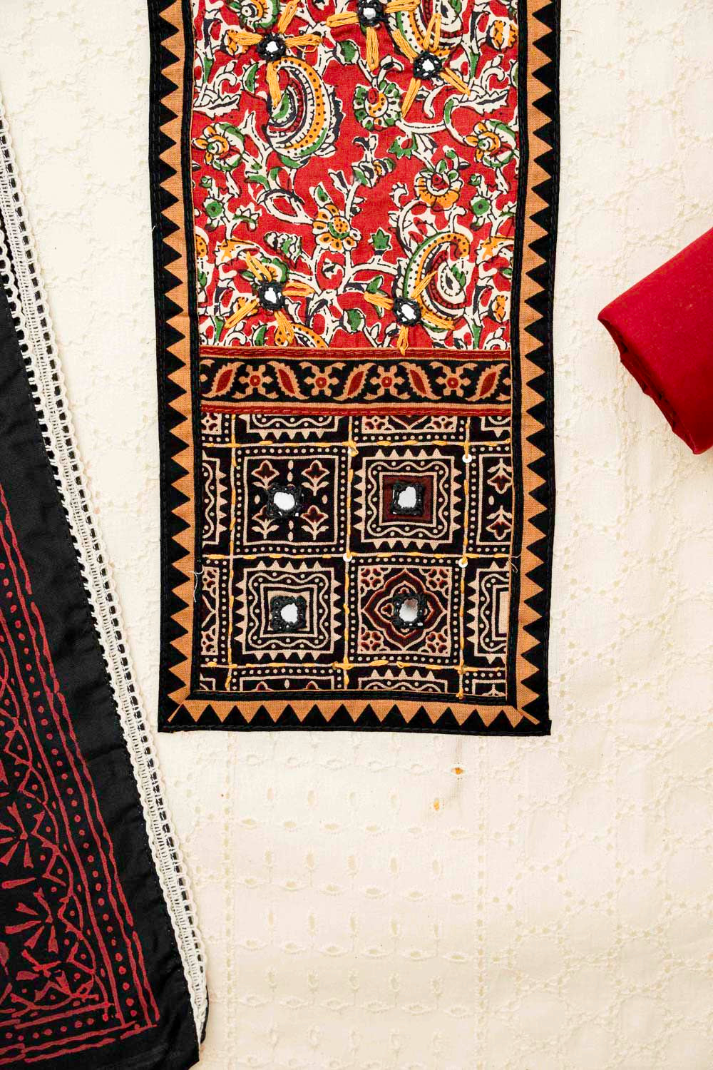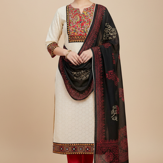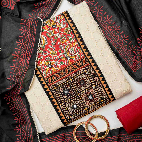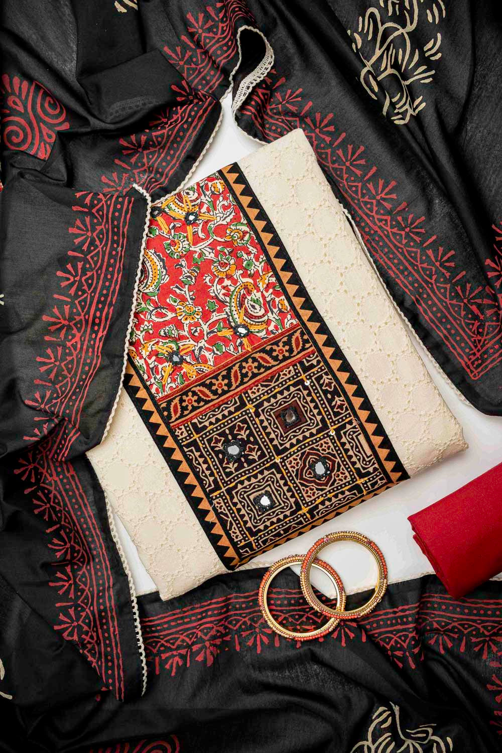 Panna Tussar Black Cotton Unstitched Salwar Suit With Cotton Dupatta