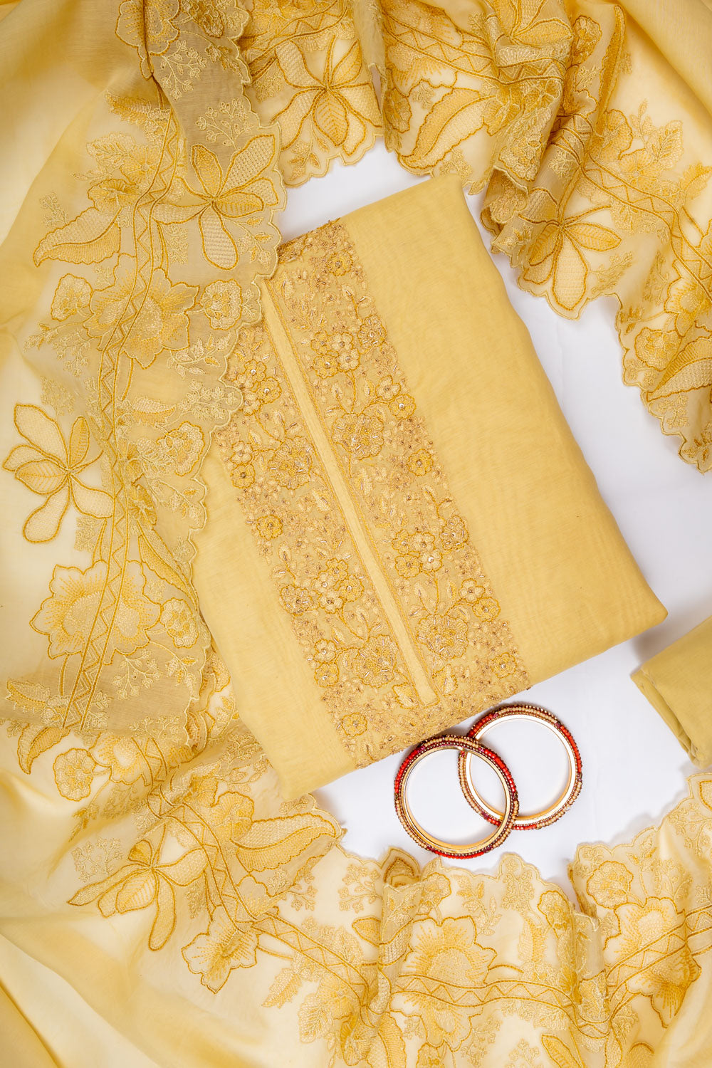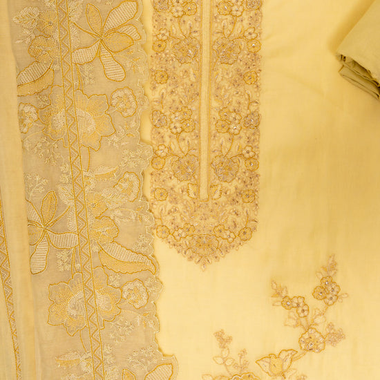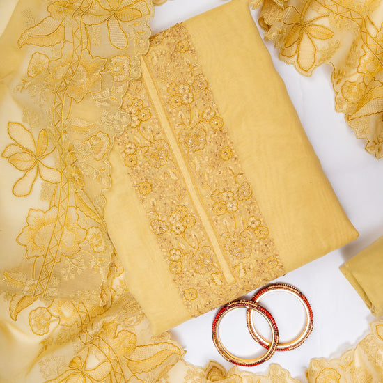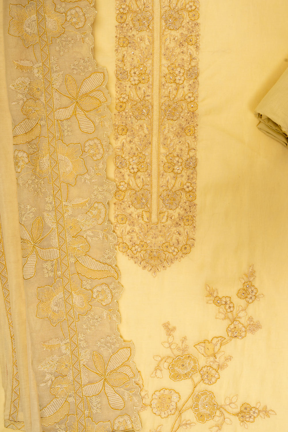 Panna Lemon Gold Cotton Unstitched Salwar Suit With Cotton Dupatta