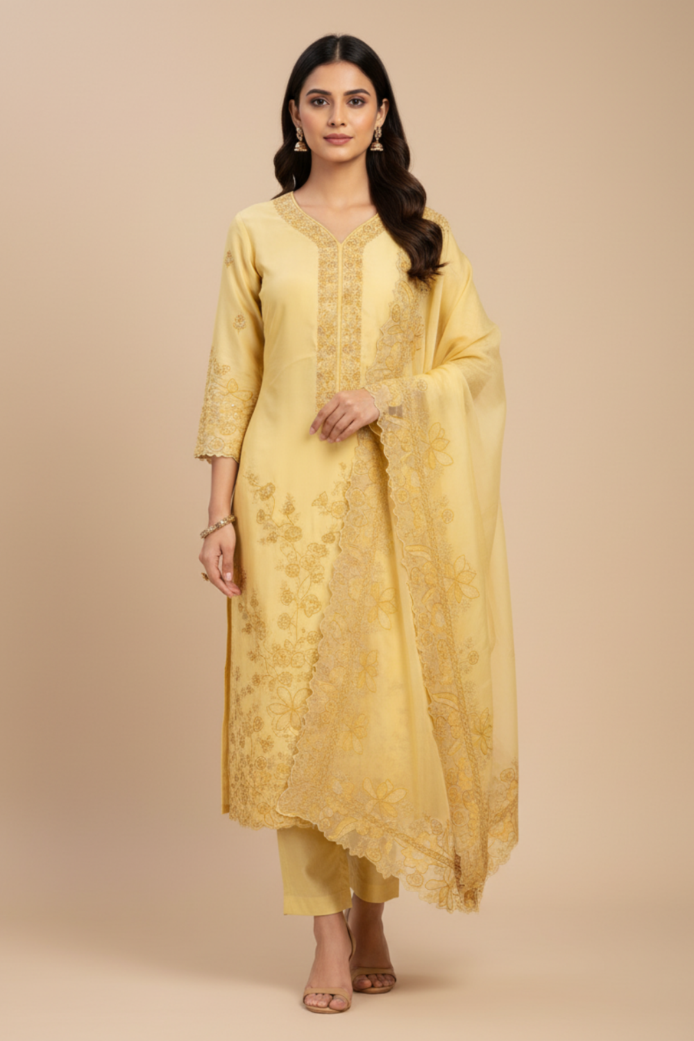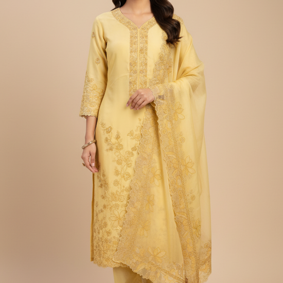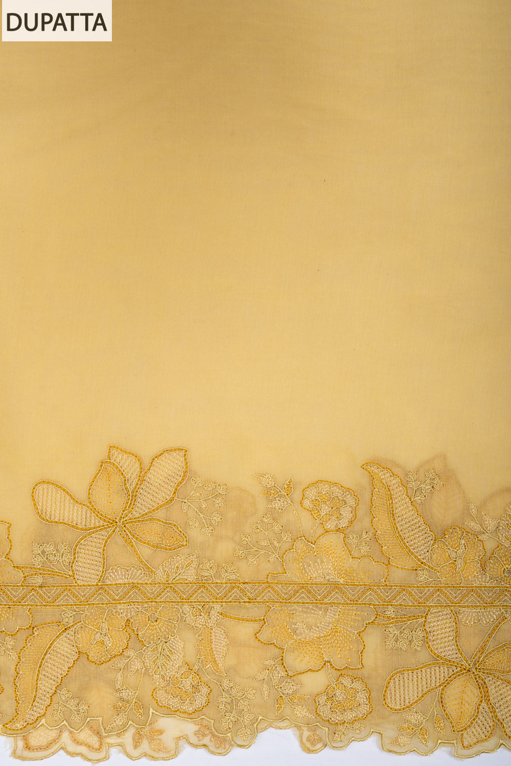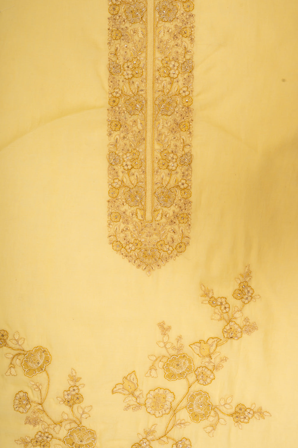 Panna Lemon Gold Cotton Unstitched Salwar Suit With Cotton Dupatta