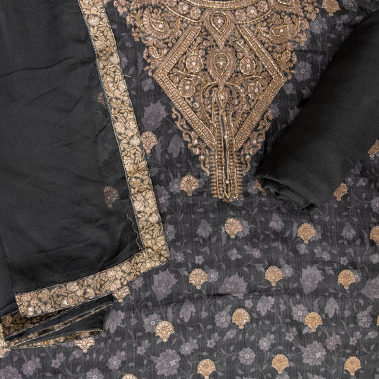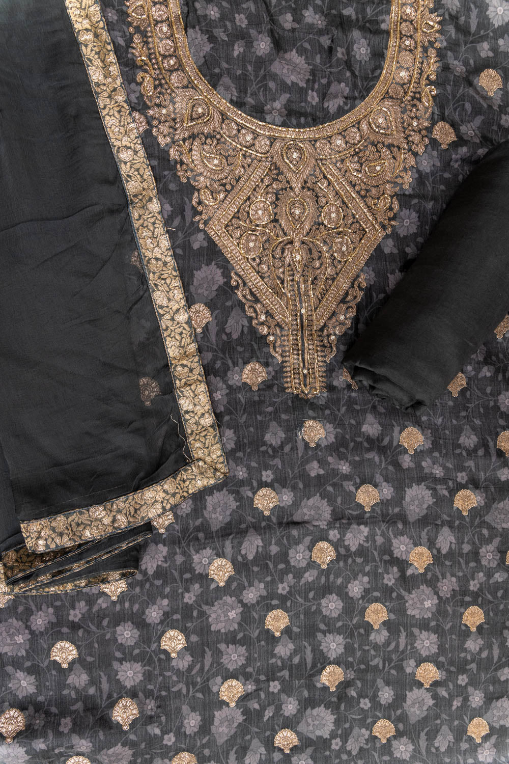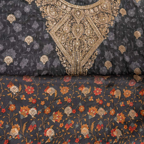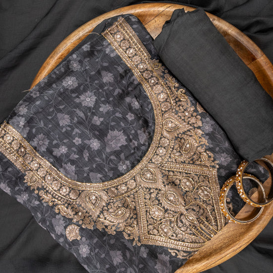 Panna Grey Cotton Unstitched Suit With Chiffon Dupatta