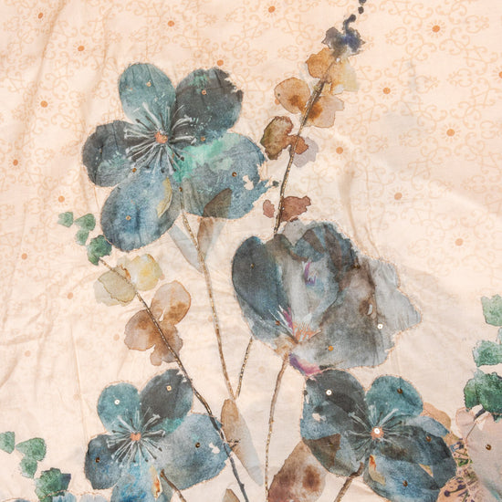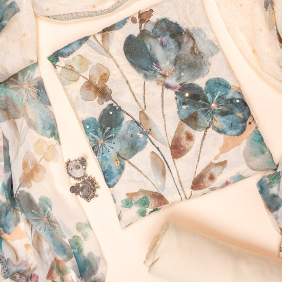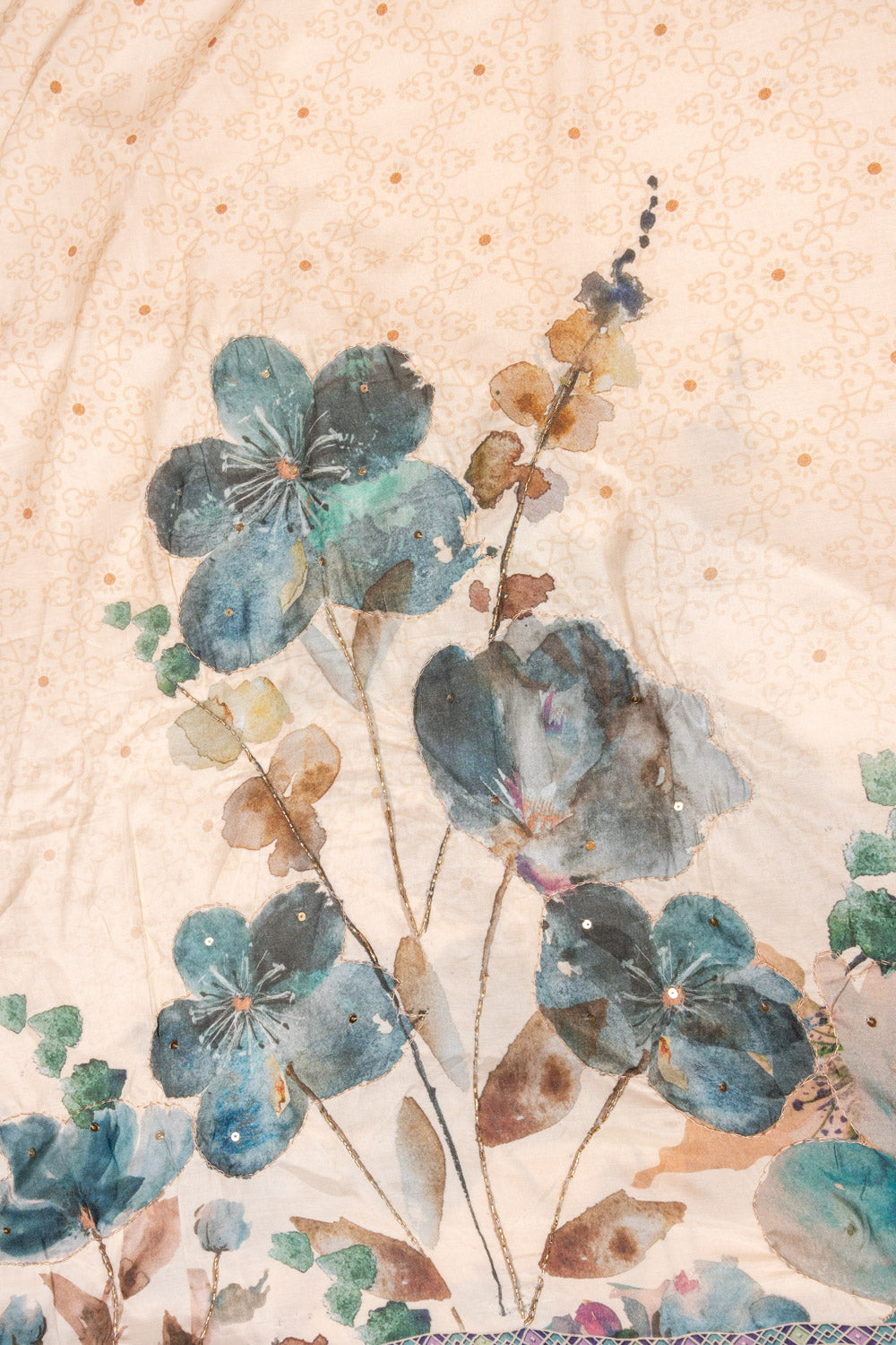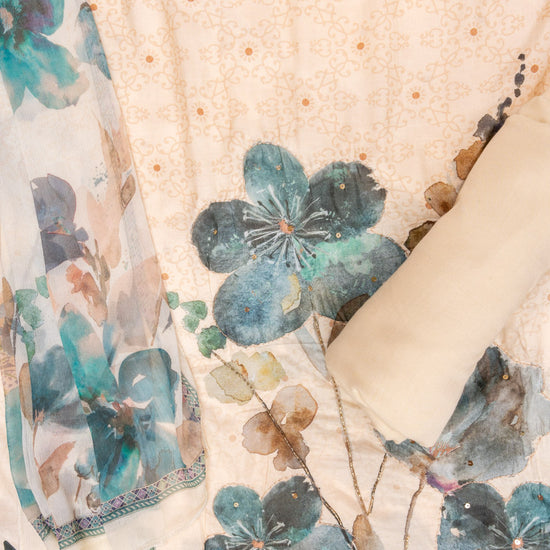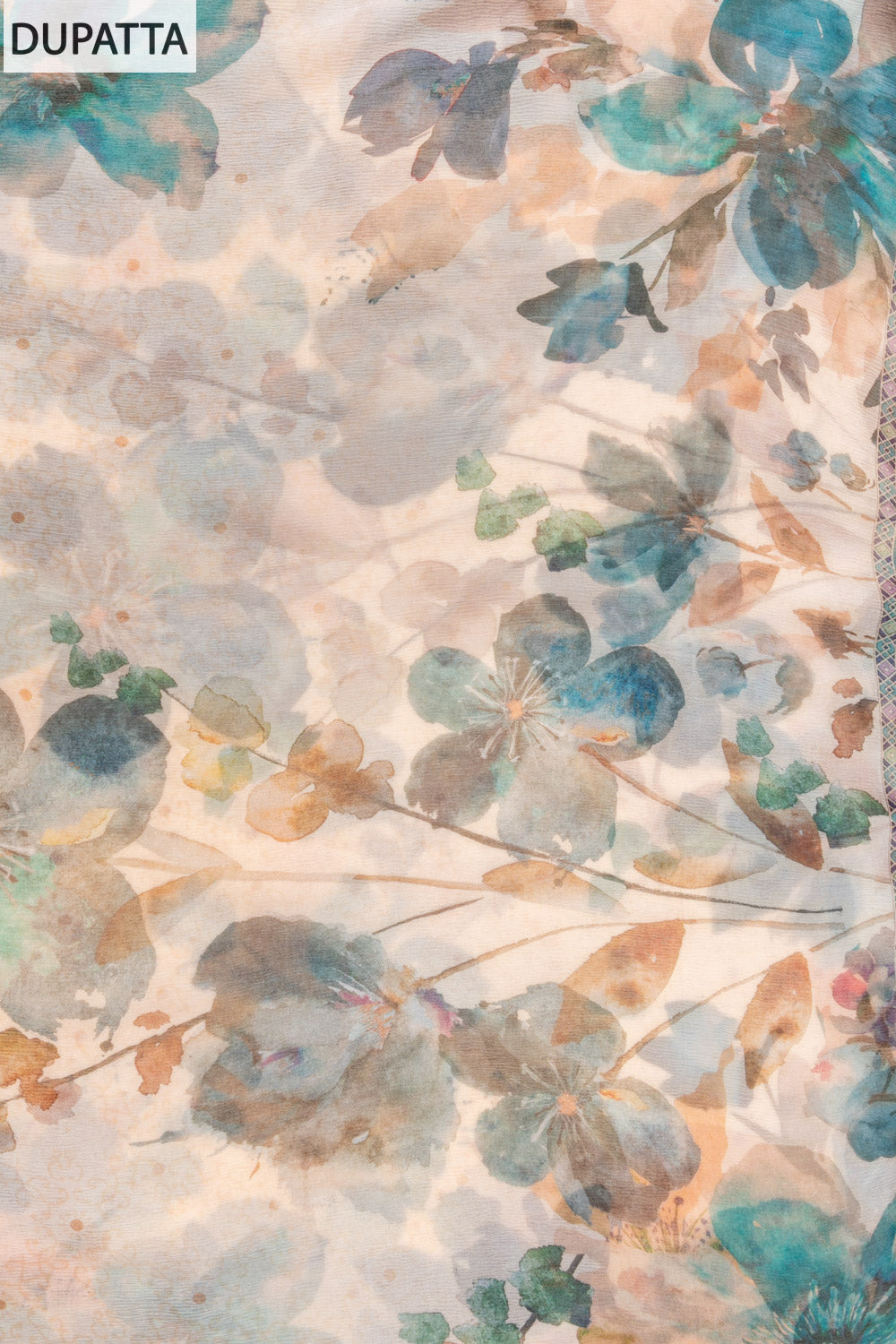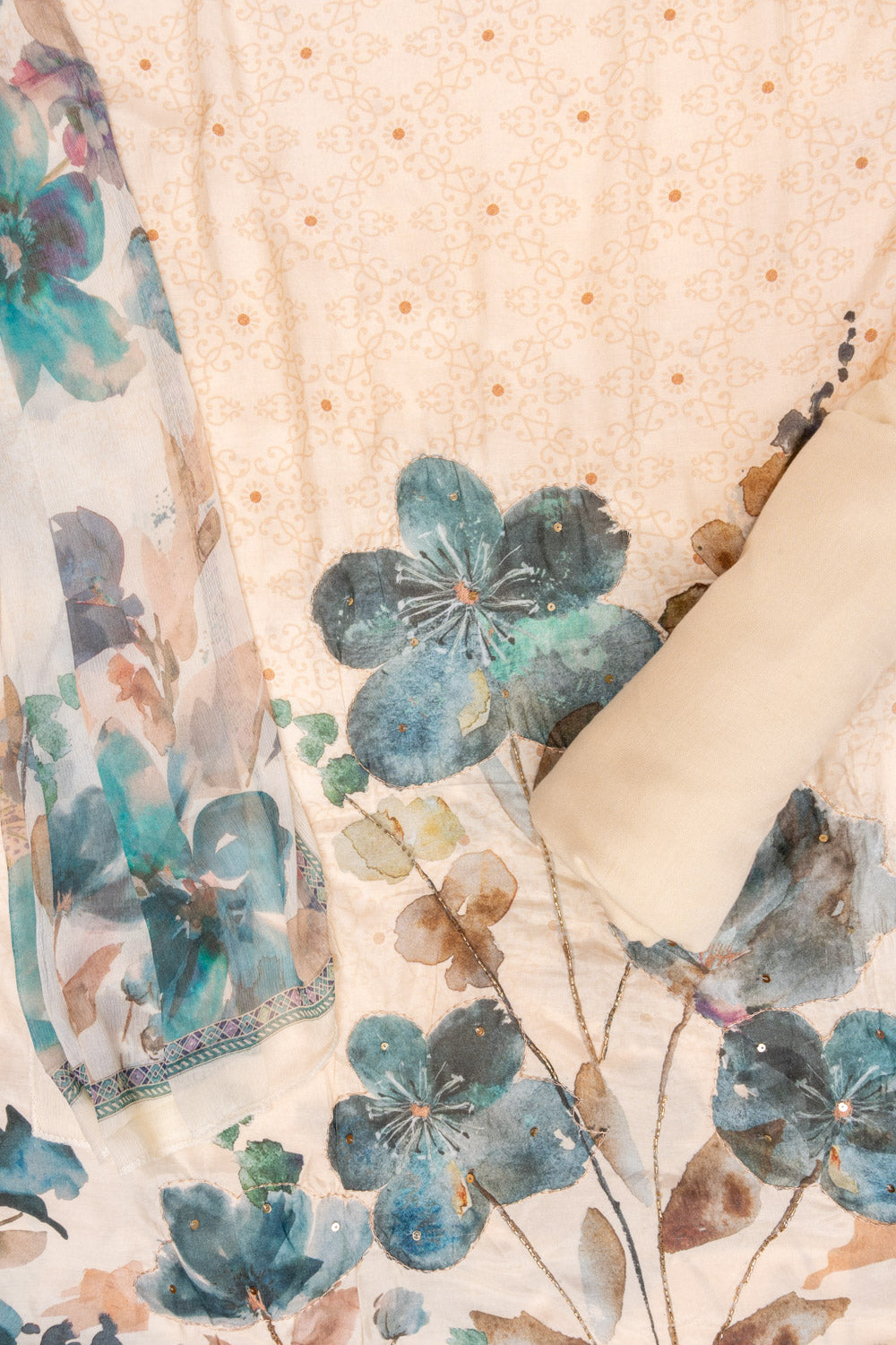 Panna Off White Floral Printed Cotton Unstitched Salwar Suit With Chiffon Dupatta